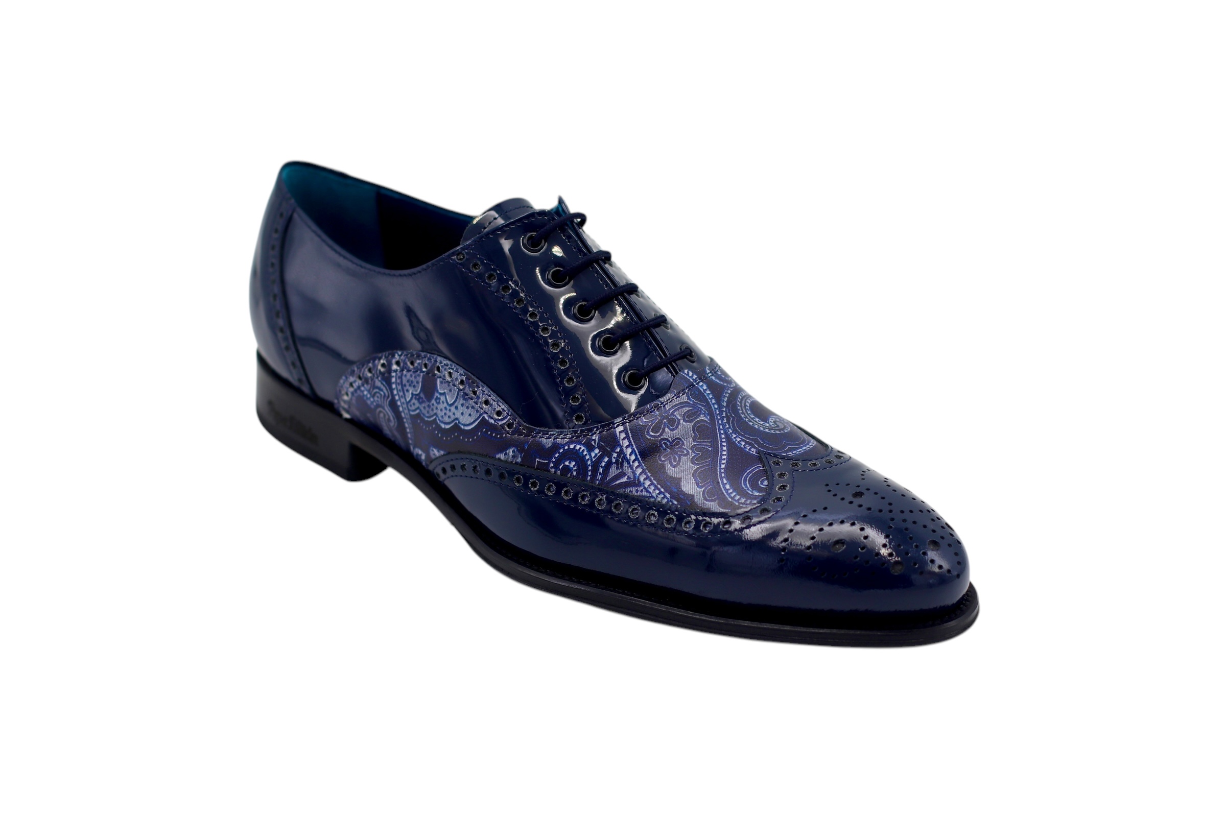 Unique design that combines perfectly with the beautiful blue patent leather and our custom fantasy design and goes well with all types of clothing.