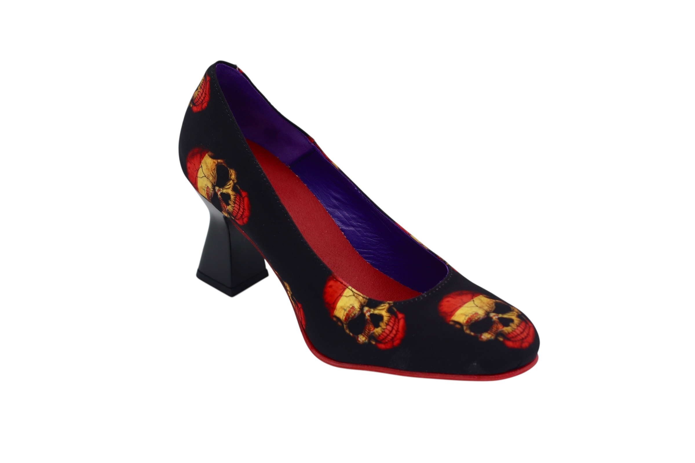 Mid-heel shoe, designed in Calaberas Spain textile, with a non-slip red skate sole made of high-quality materials for maximum comfort for all our customers.