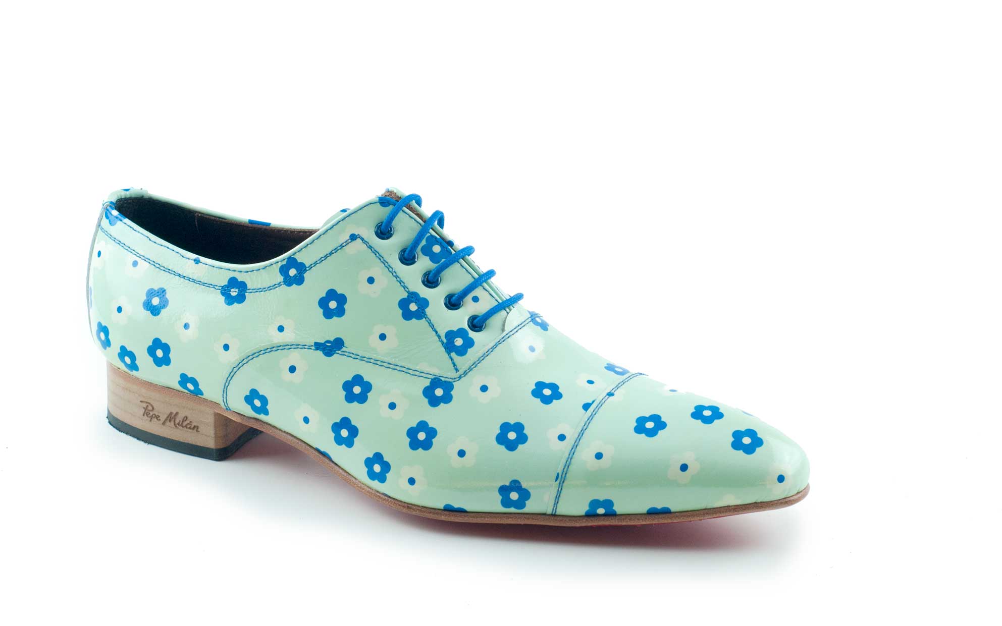Unique design in green patent leather with flowers that combine excellently and give an exclusive and unique image.