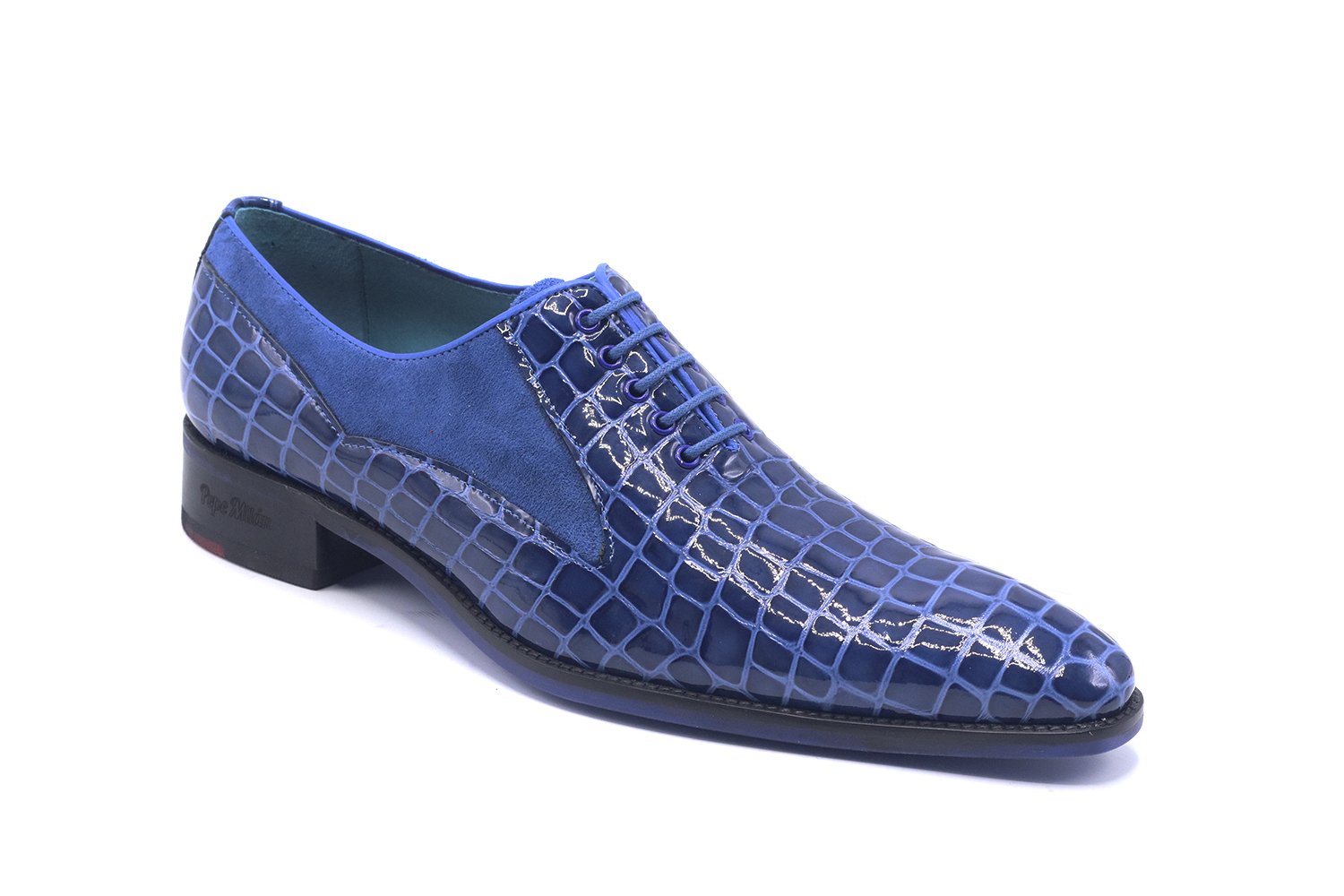 Unique design in blue patent leather that combines with all types of clothing and gives an image of unmatched elegance.