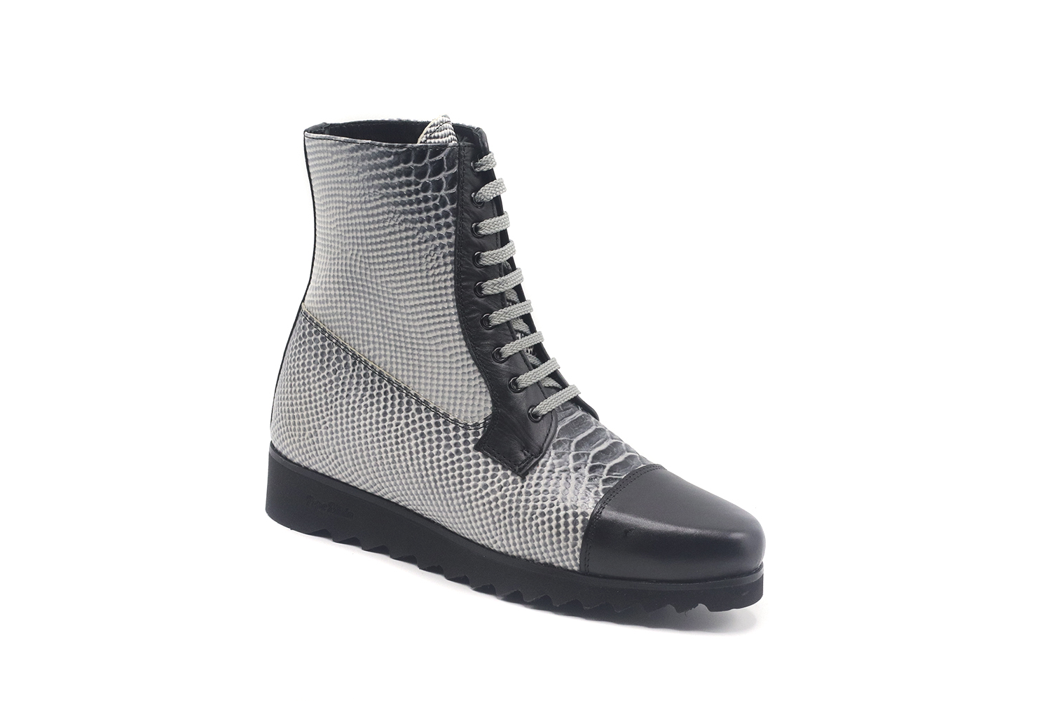 Vitaly Ankle Boot model, manufactured in Anaconda Negra y Blanca, 5192 last and non-slip skatesole. Wonderful model that stands out for its originality, characteristic of Pepe Milán brand.