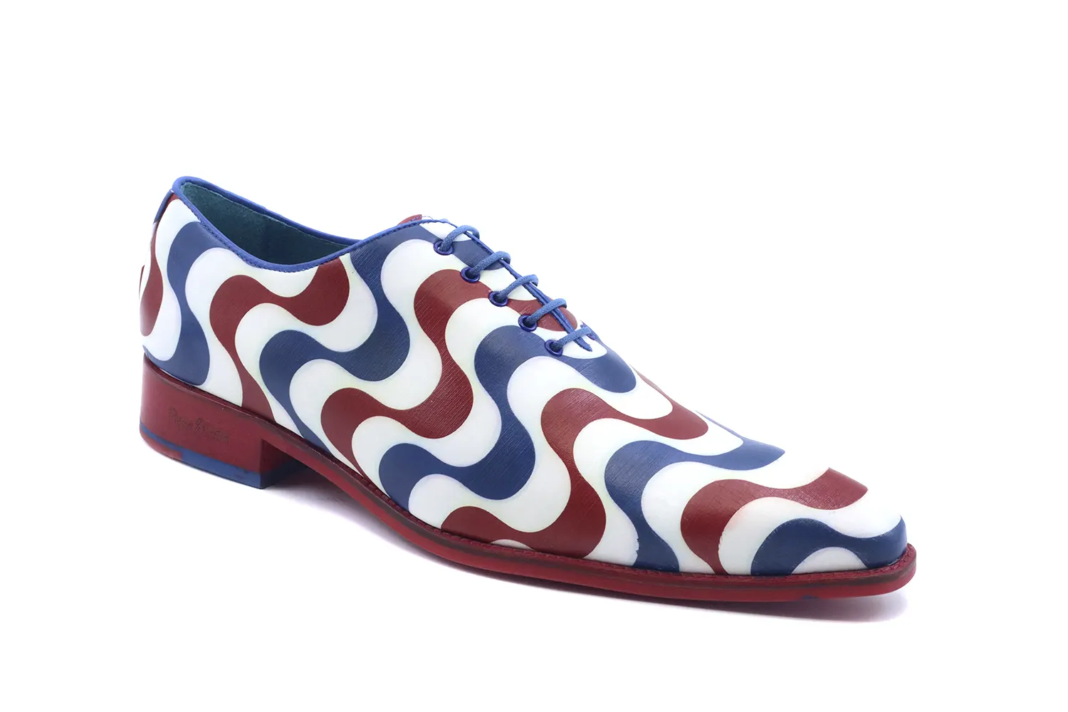 Zapato de napa ,diseñado en Fantasia Alicante mosaico, suela patin milán roja antideslizante, siguiendo el metodo de fabricación Blake.