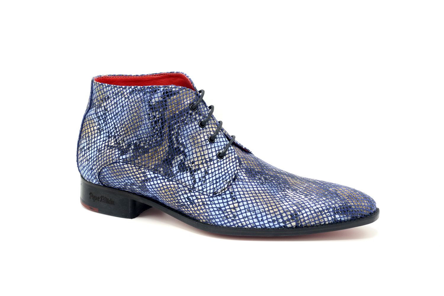 Botín modelo BB King, diseñado en 111 CATRIA N6 Horma Cuba y suela combinada. Magnífico modelo que destaca por su originalidad, característica de la marca Pepe Milán.