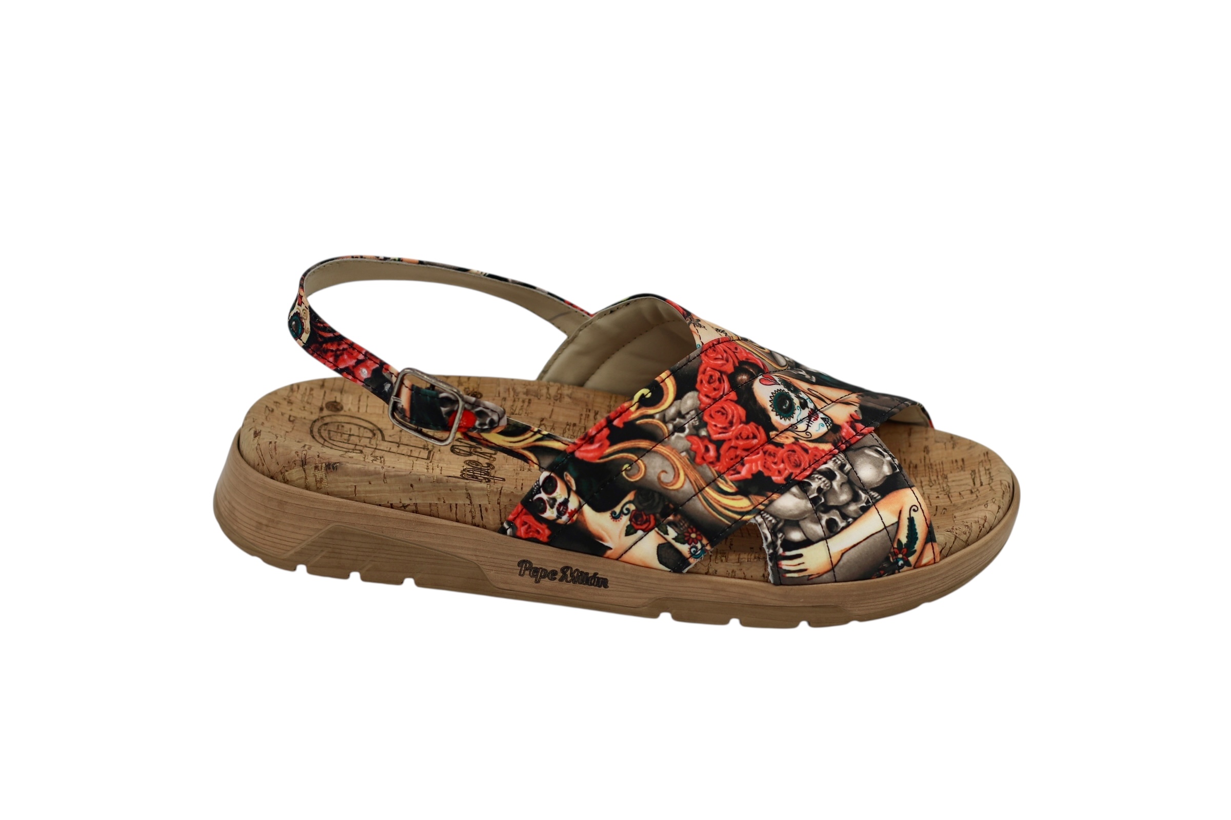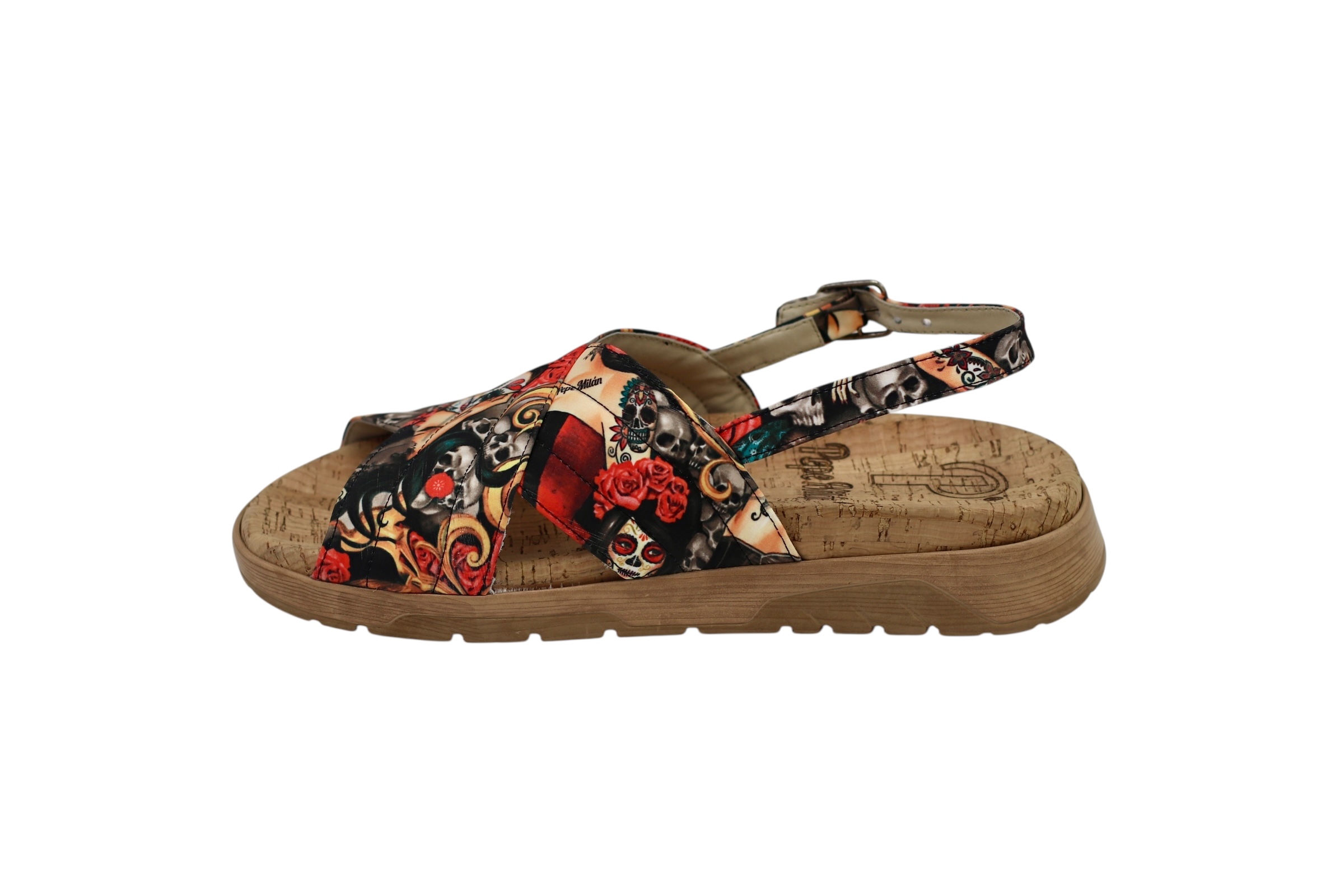Sandalia de textil, diseñada en Catrina woman, haciendo referencia a uno de los diseños mas importantes de nuestra marca creamos esta edicion para verano.
