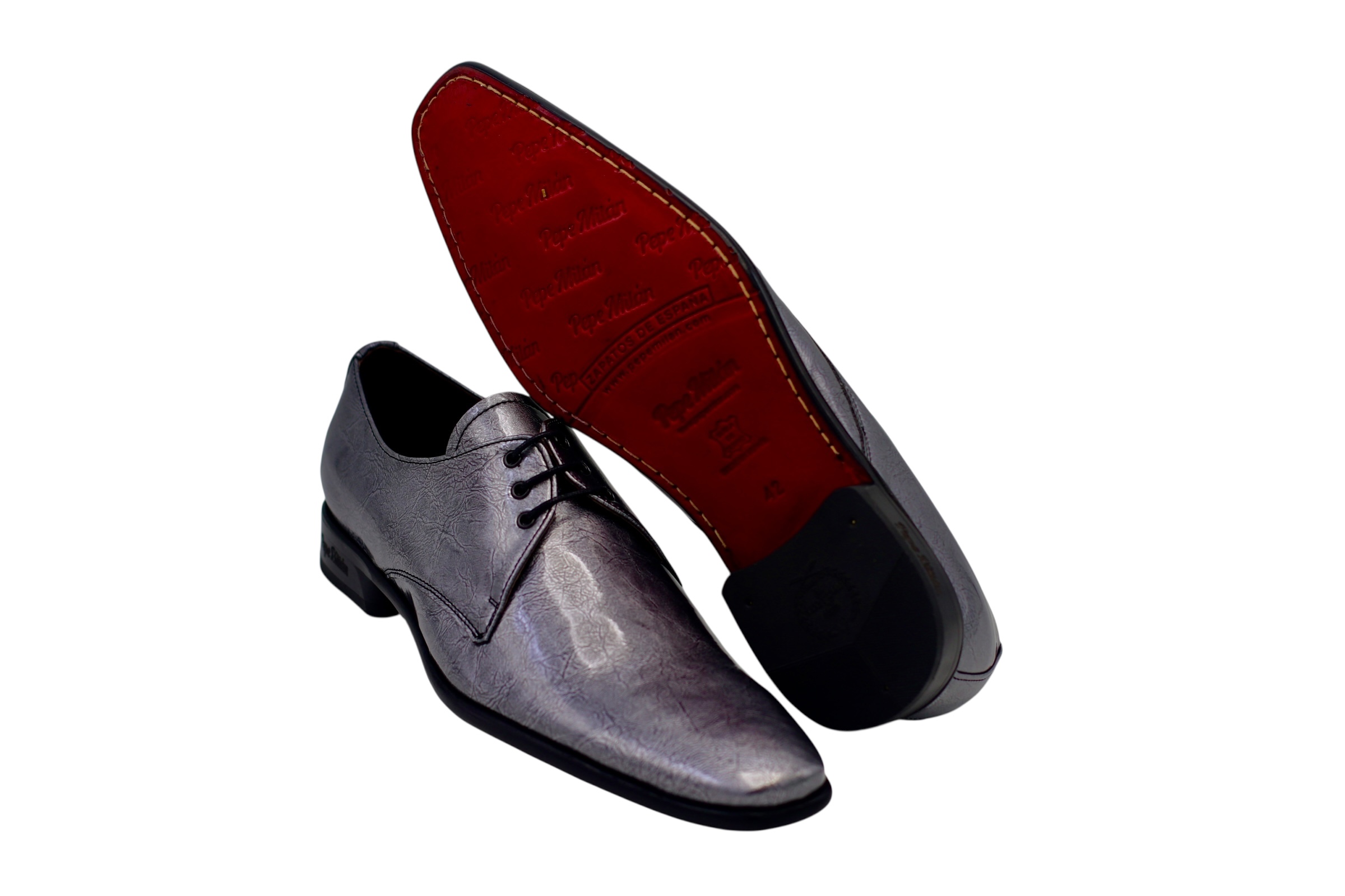 Zapato de charol, diseñado en charol plomo, suela de cuero roja con materiales de altisima calidad para la maxima comodidad de todos nuestros clientes.