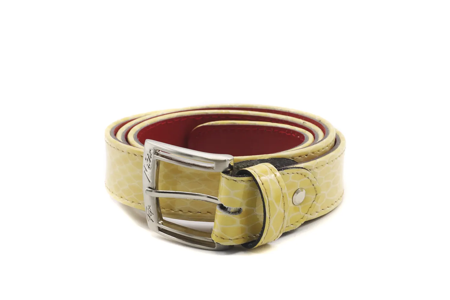 Cinturón de charol, diseñado en Serpiente charol Amarilla-Crema