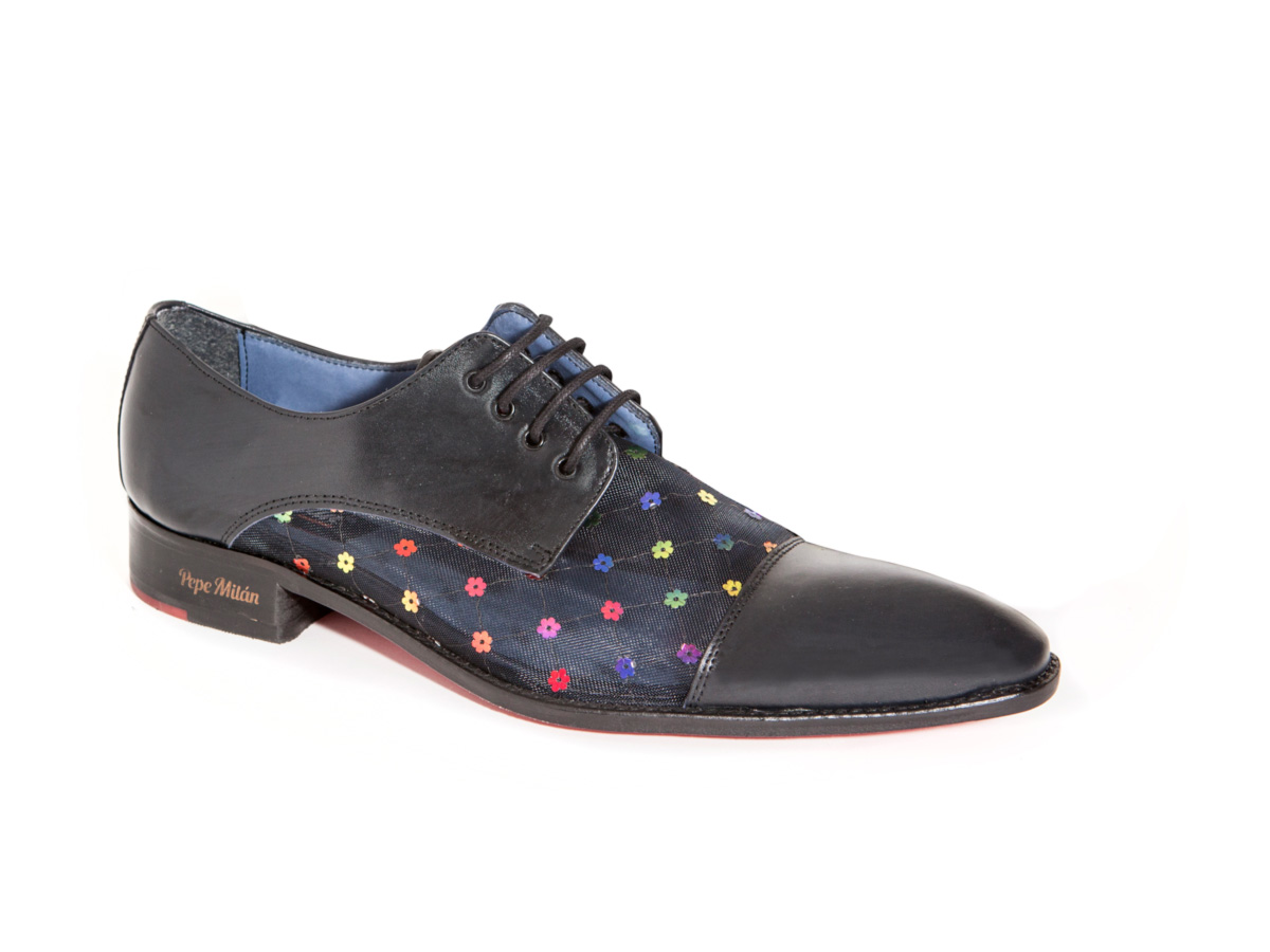 Zapato modelo Engagement, diseñado en napa negra con transparente, suela de cuero roja con una zona central antideslizante y con materiales de altisima calidad para la maxima comodidad de todos nuestros clientes.