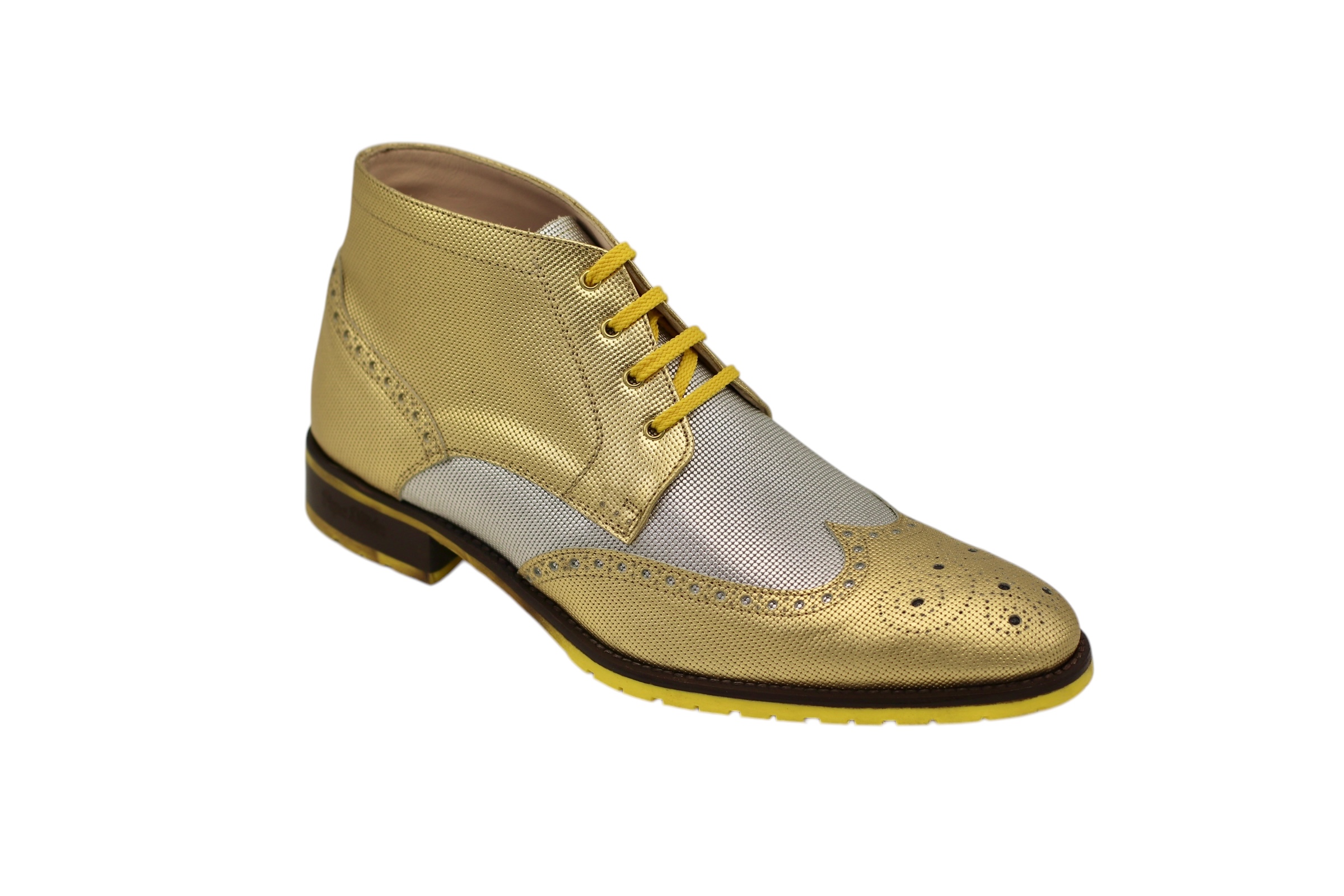 Botín modelo Esre diseñado en Piel Napa Oro Plata Forro Beige Piso Eva Amarilla R_303 Marron Punto cerco Amarillo Horma Luvi