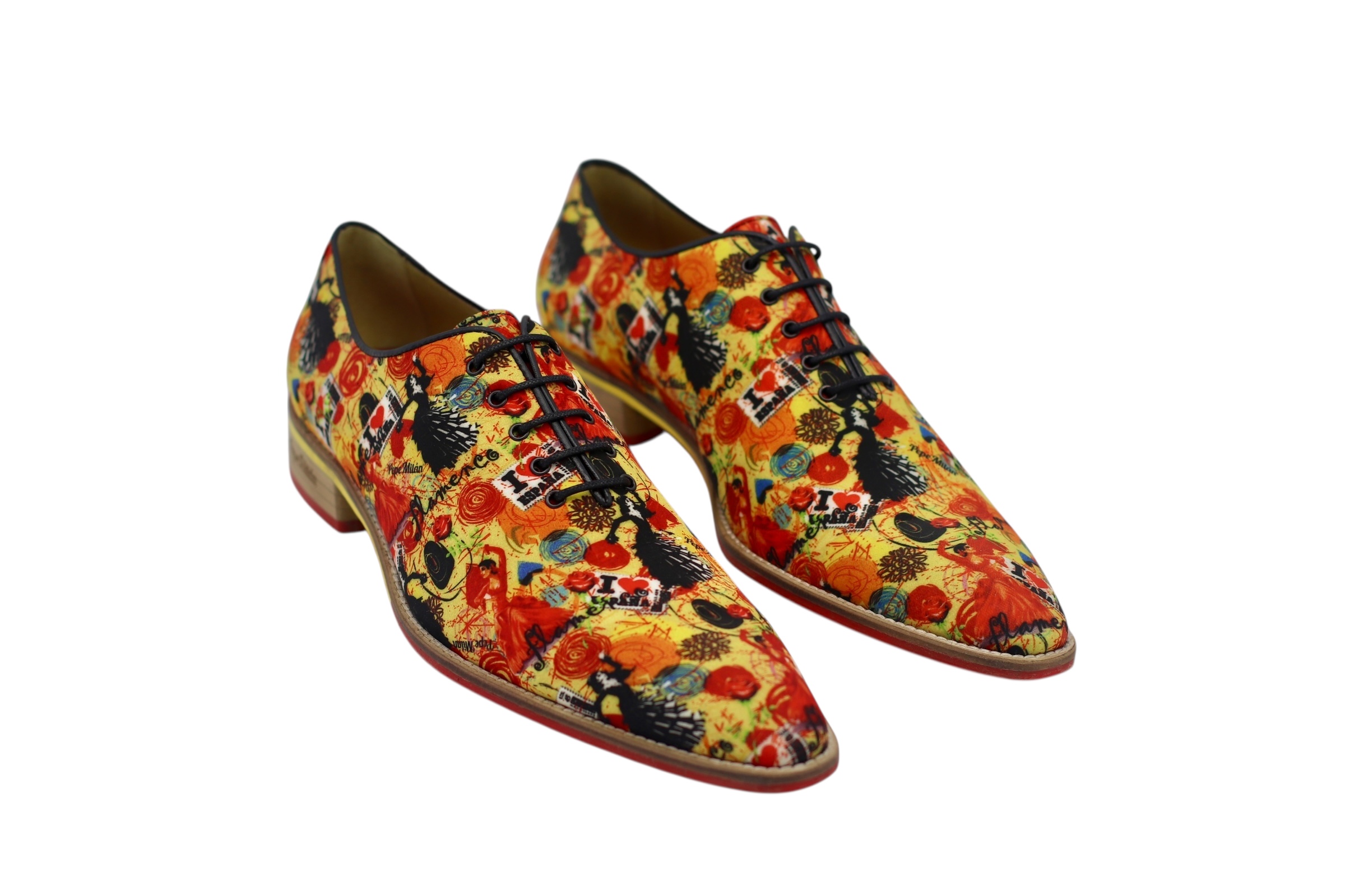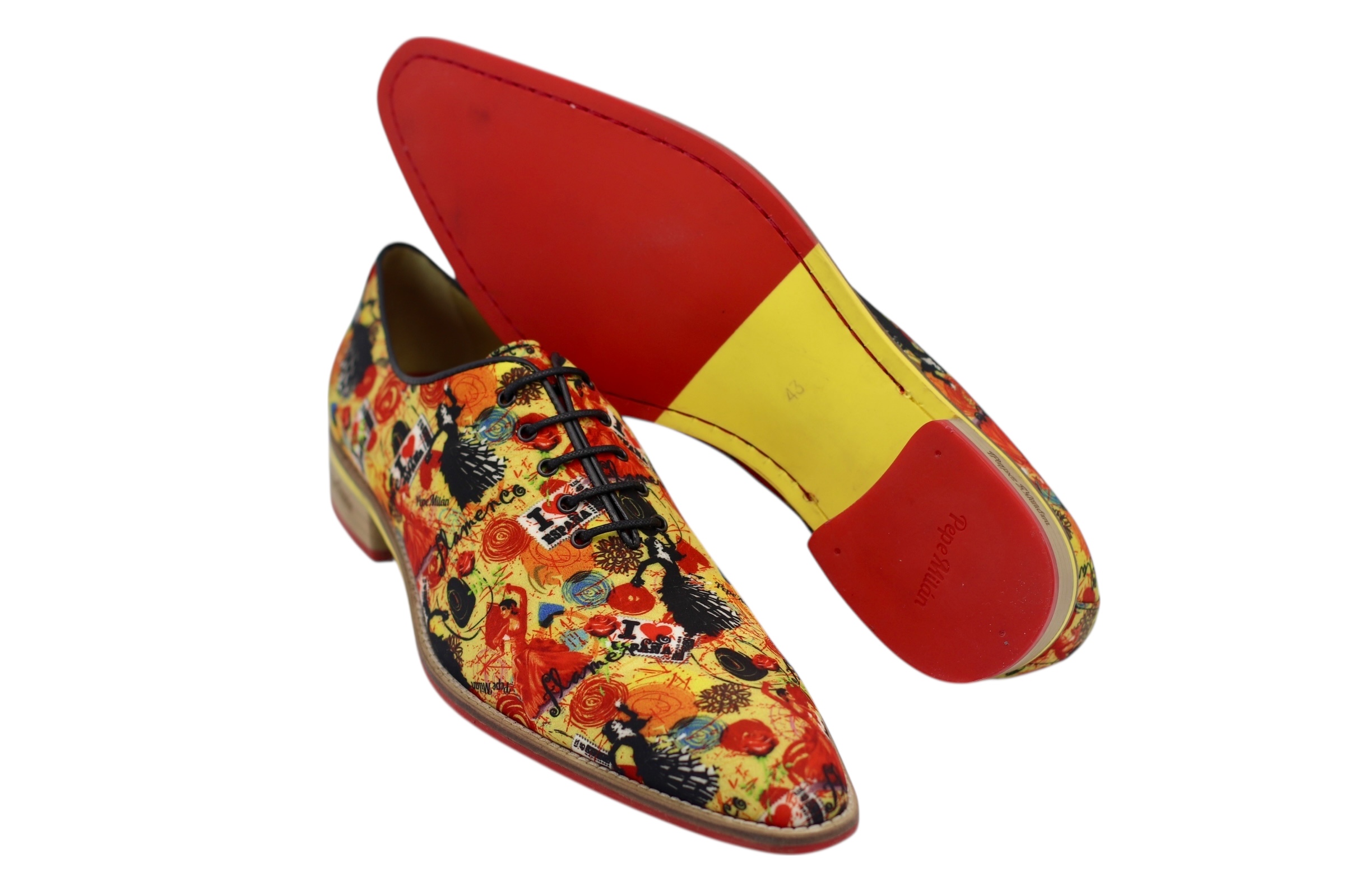 Zapato de textil, diseñado en fantasia españa, piso de goma amarillo y rojo antideslizante con materiales de altisima calidad para la maxima comodidad de todos nuestros clientes.