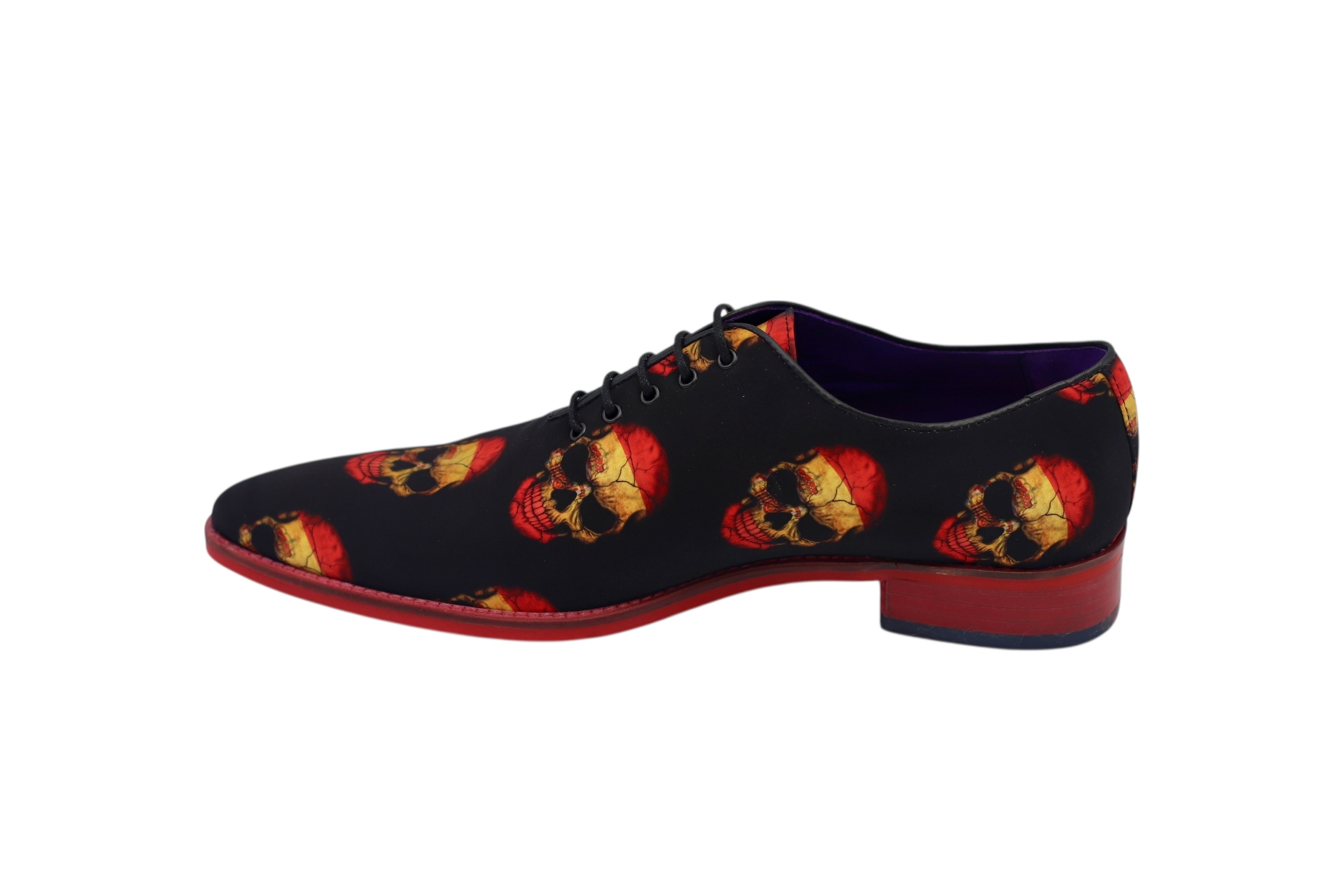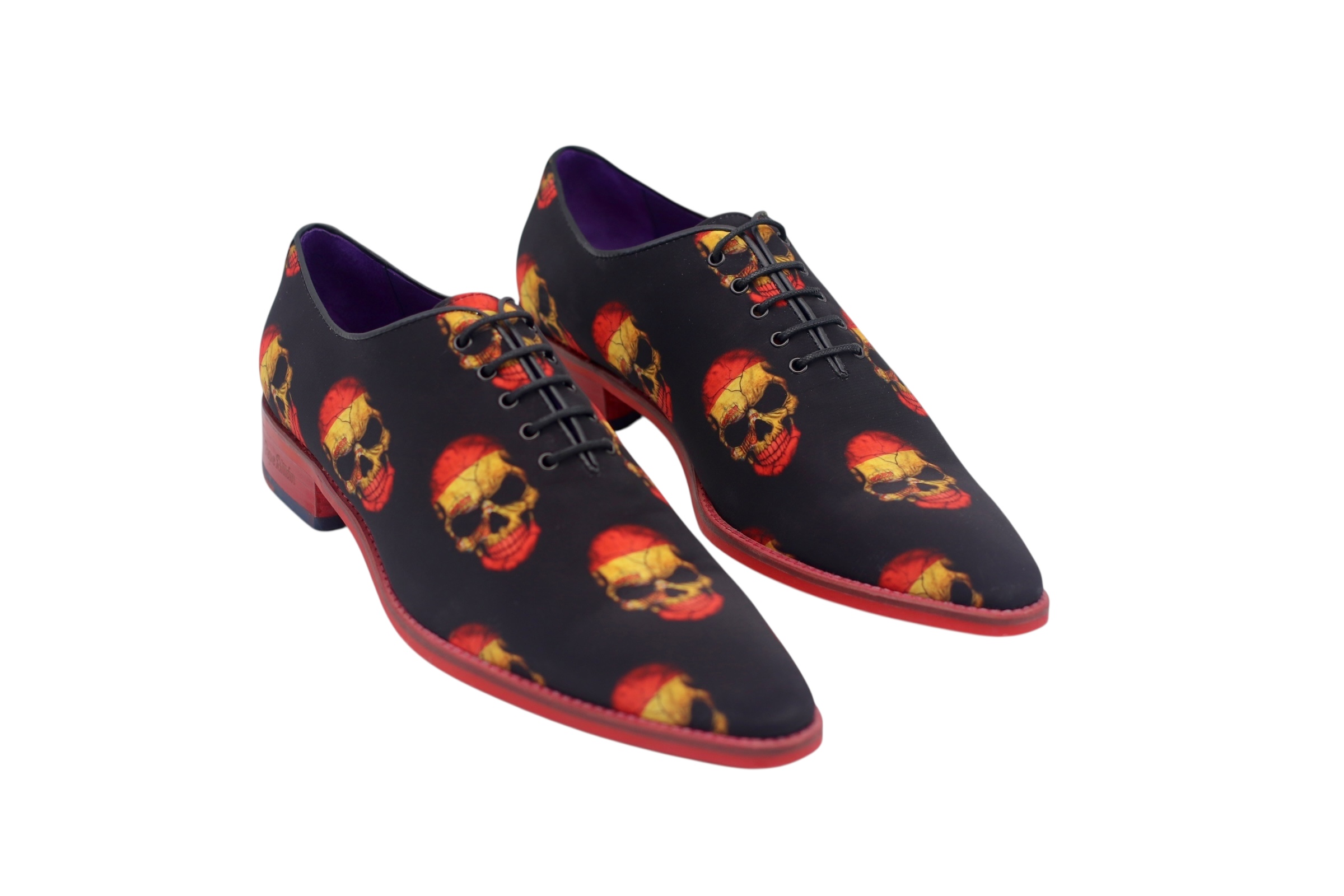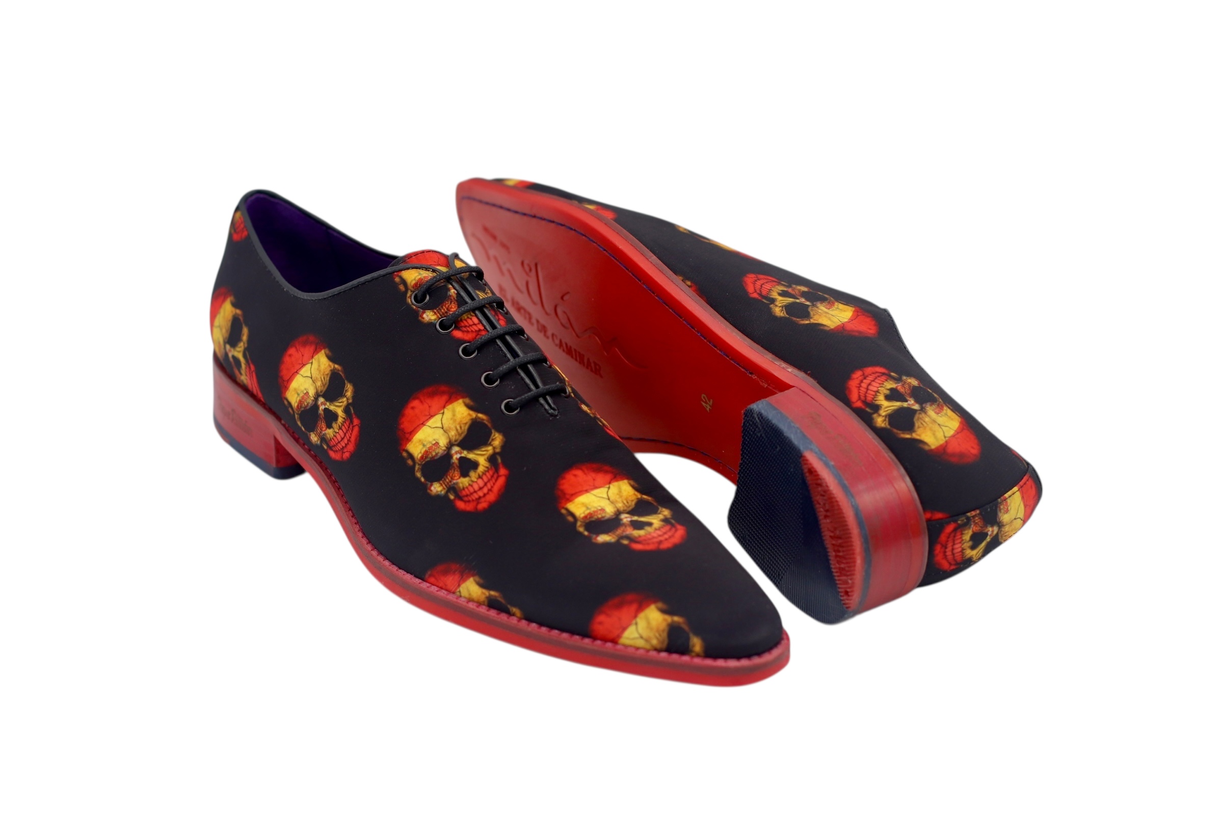 Zapato de textil, diseñado en textil calaberas spain, piso patin milan rojo antideslizante con materiales de altisima calidad para la maxima comodiad de todos nuestros clientes.
