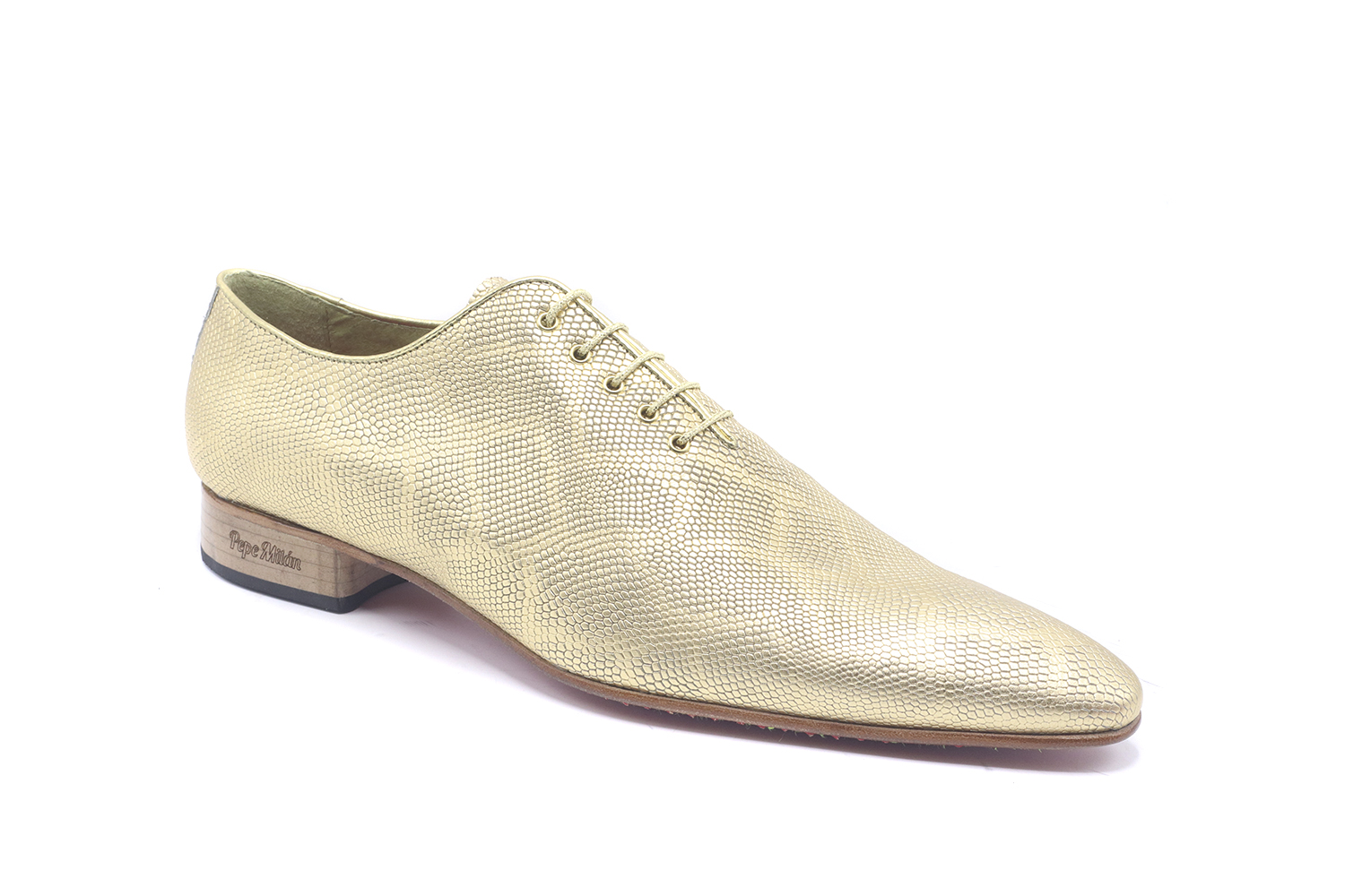 Zapato de napa,diseñado en napa Sand dorado flamingo, Vivo Oro Forro Cabra Verde Piso Suela Agua Roja Tacon Tapa Milan Negra Horma Cuba