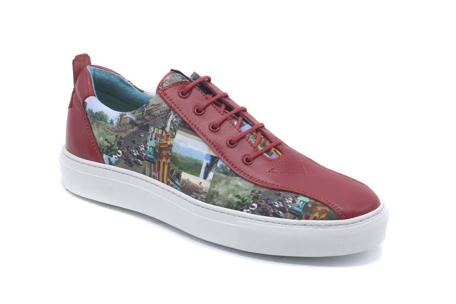 Sneaker modelo Floridita, diseñado en Napa Roja y Fantasia Habana Piso Bombay Blanco Horma Altea