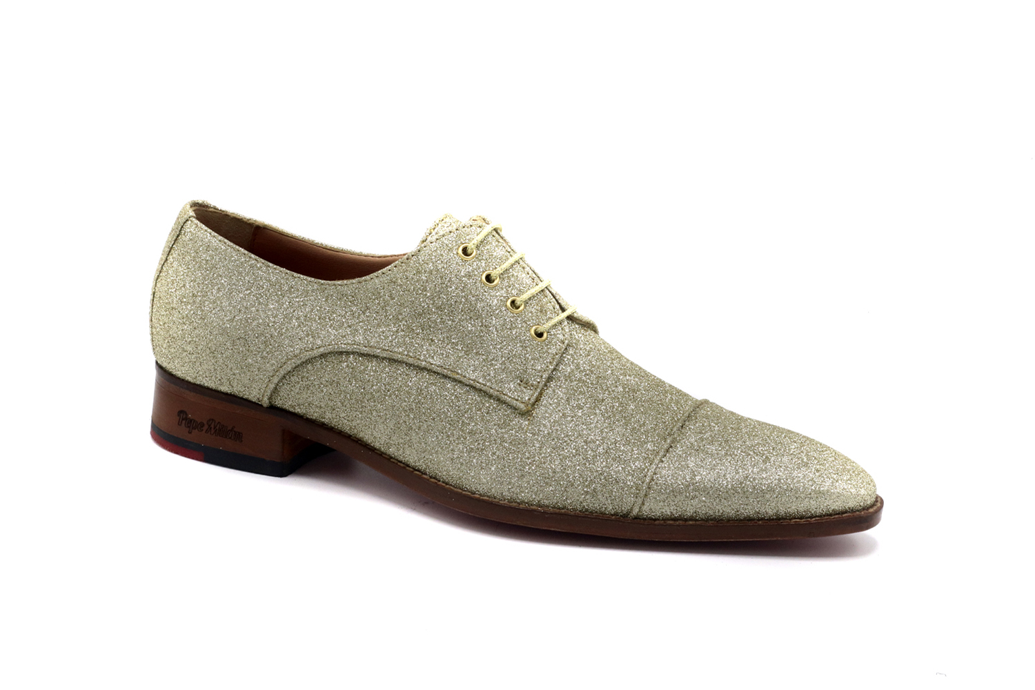 Zapato de Glitter, diseñado en Glitter Golden, suela de cuero roja con una zona central antideslizante y con materiales de altisima calidad para la maxima comodidad de todos nuestros clientes.