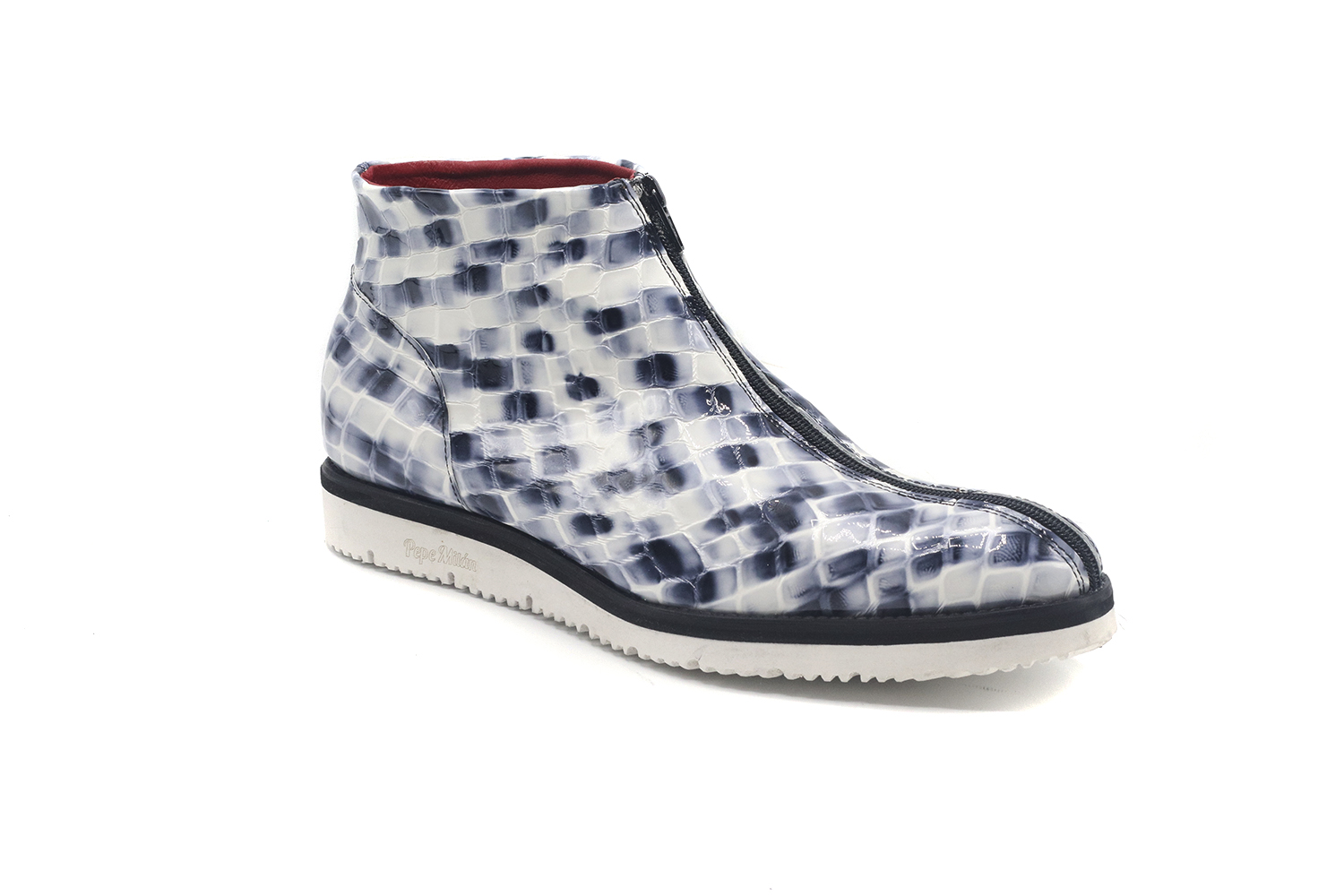 Botín modelo Jasper, diseñado en Talave Blanco Horma Stylo y suela combinada. Magnífico modelo que destaca por su originalidad, característica de la marca Pepe Milán.