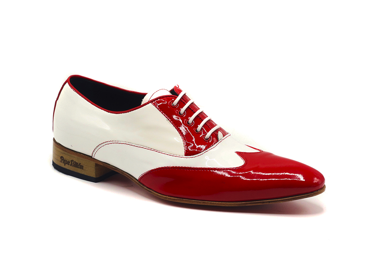Modelo especial bicolor que combina un charol blanco con uno rojo y da una imagen de elegancia inigualable.