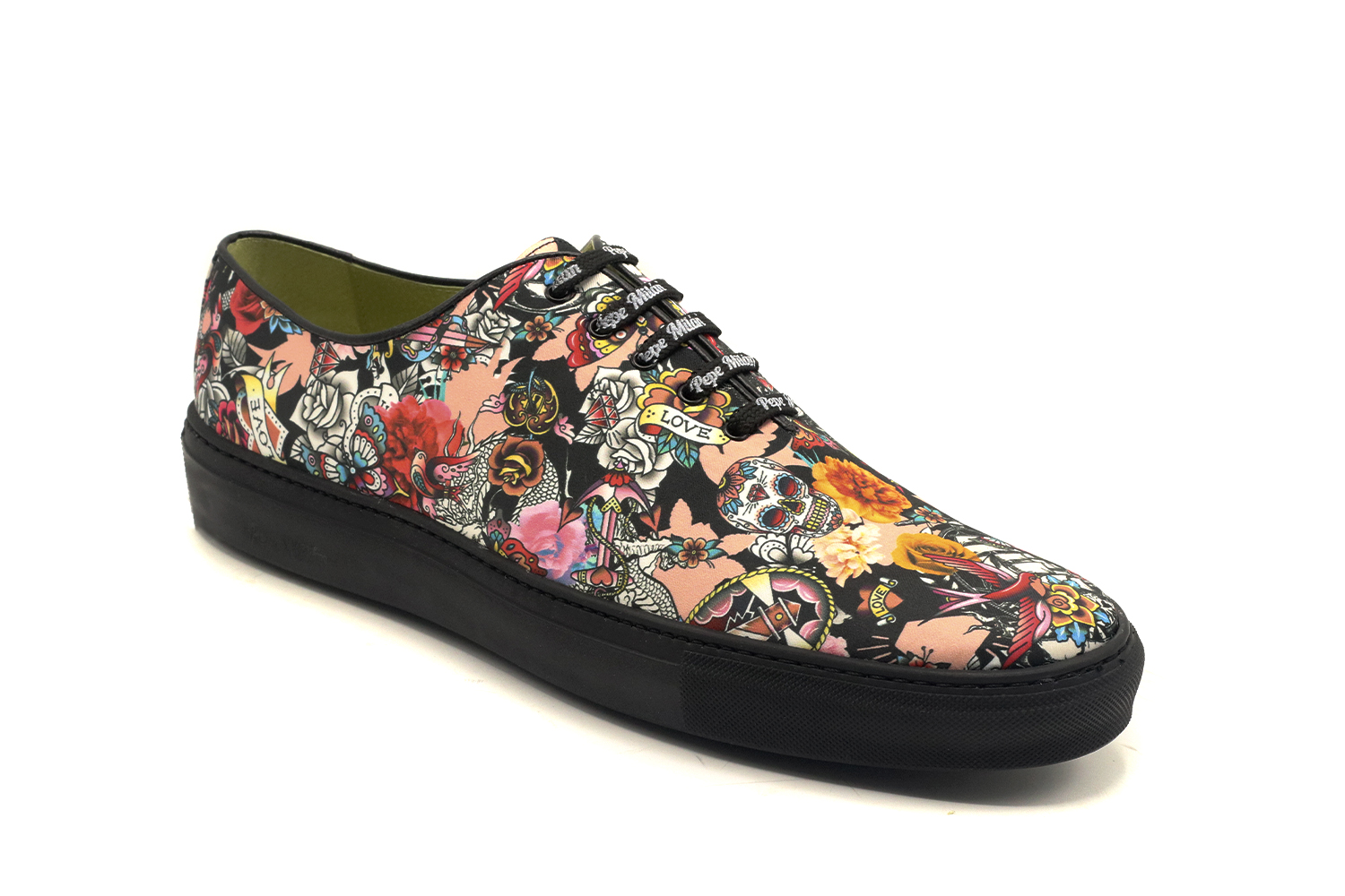 Sneaker modelo Emti Cab, diseñado en Fantasia Kimi Negro con piso Bombay color negro