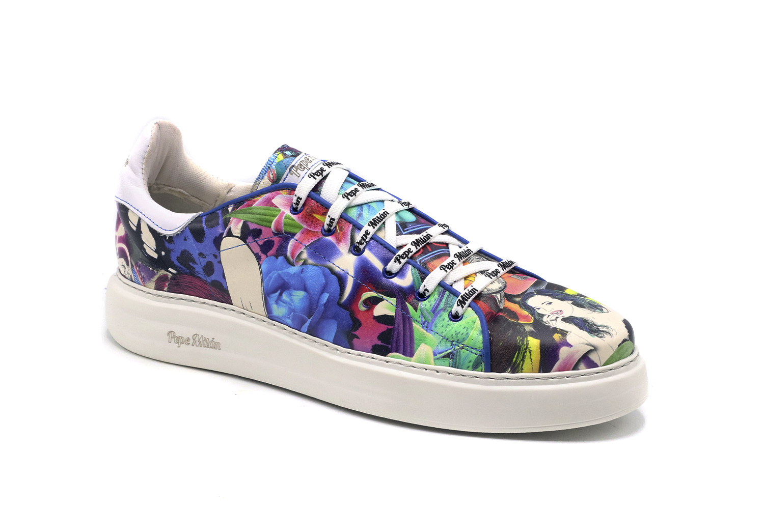 Sneaker modelo Tea,diseñado en Napa Music/ Napa Blanca Horma Altea Piso Modelo Confort Jacob Blanco - antideslizante. Magnífico modelo que destaca por su originalidad, característica de la marca Pepe Milán.