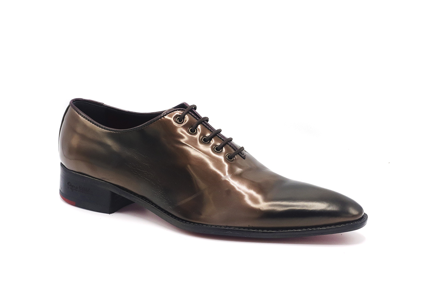 Diseño especial en charol degradado negro y marron que combina con cualquier tipo de prenda.