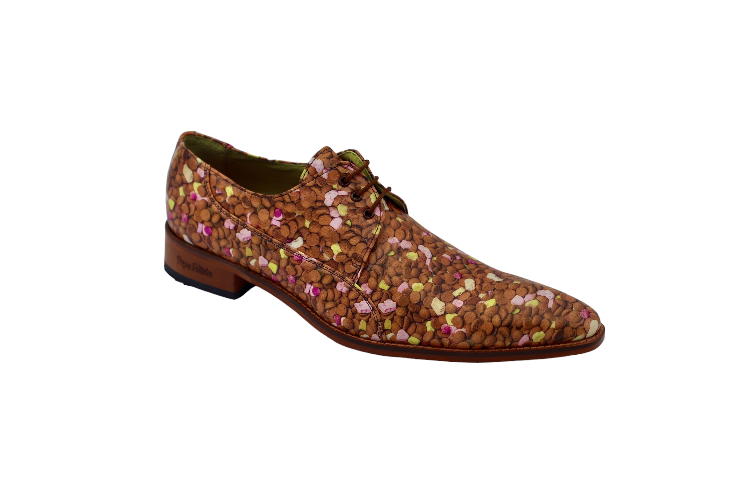 Zapato de napa, diseñado en napa Peppermoten, suela de cuero roja con una zona central antideslizante y con materiales de altisima calidad .