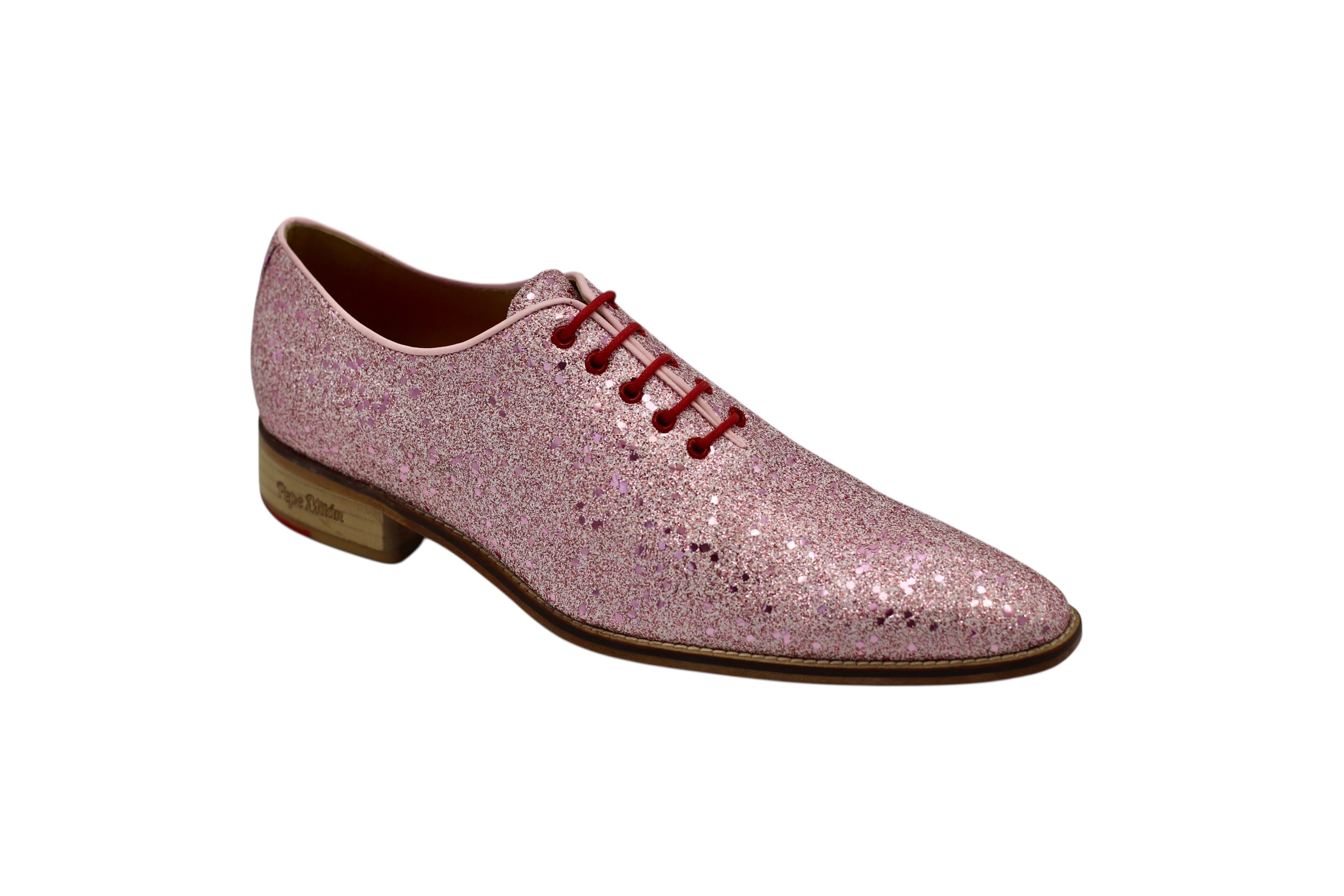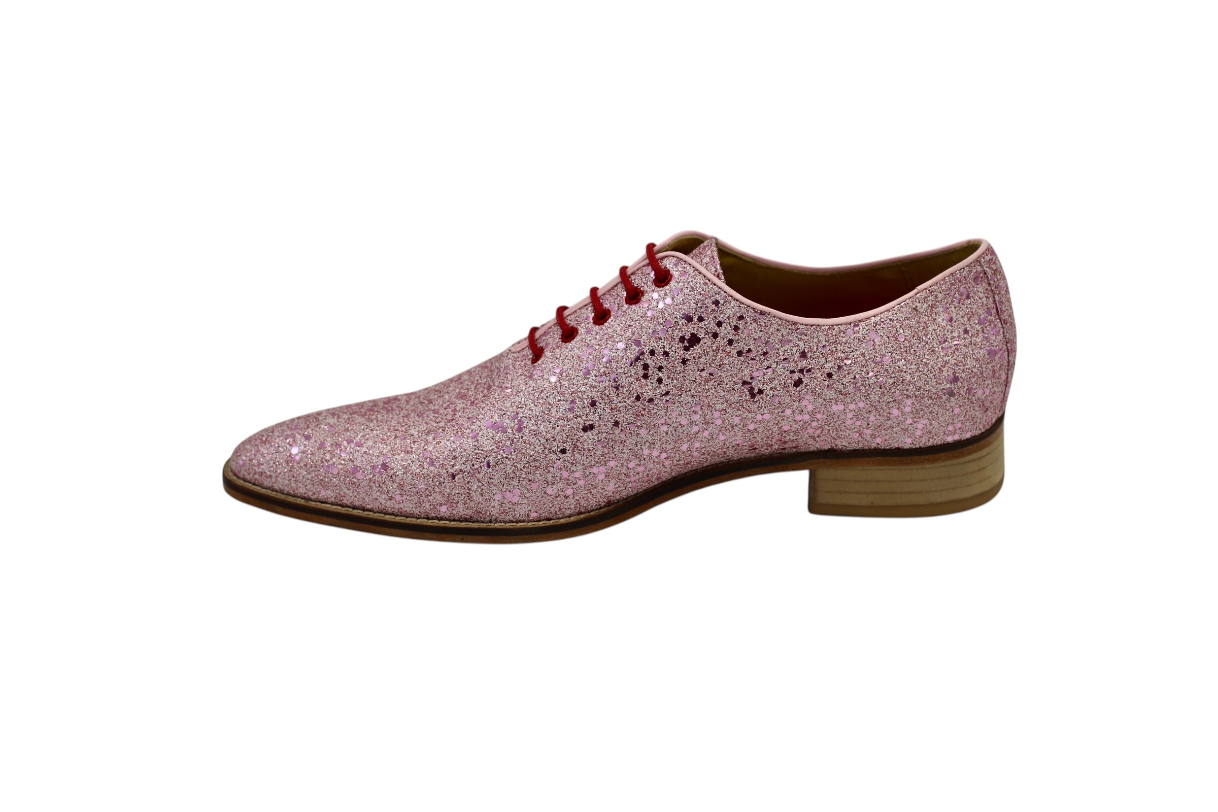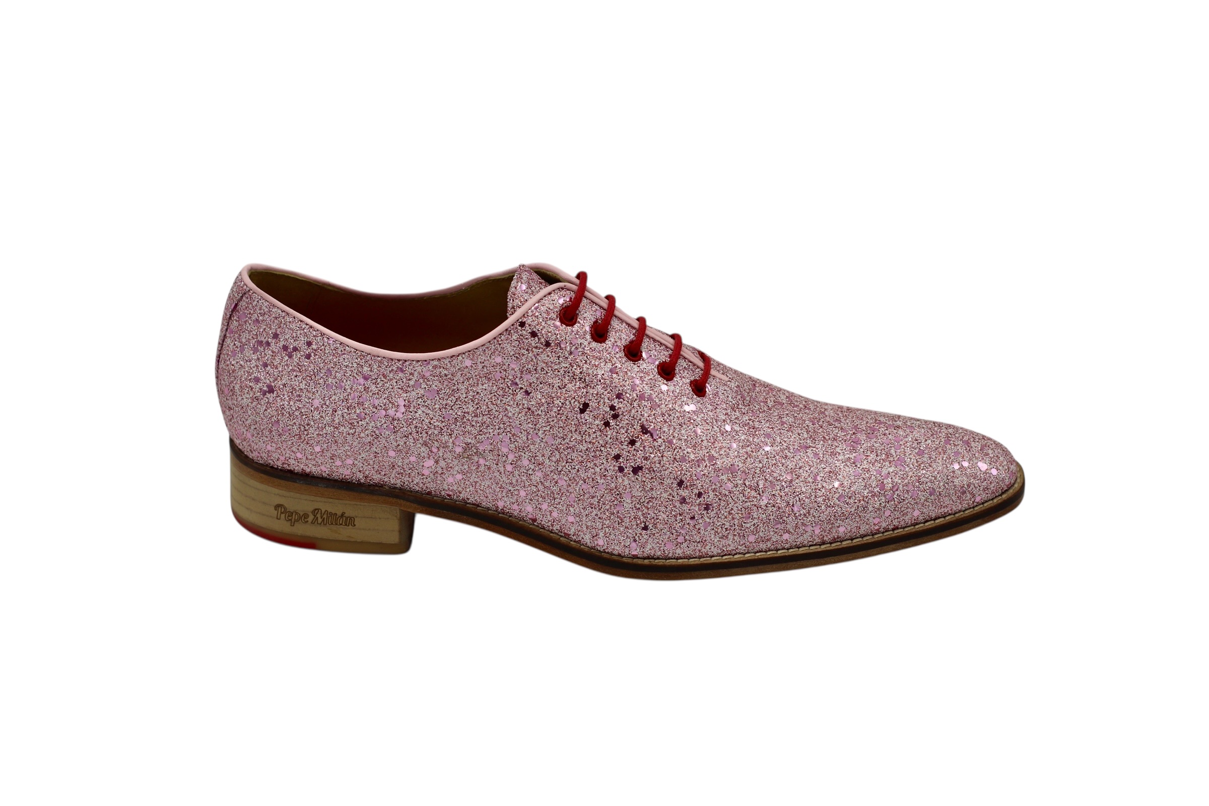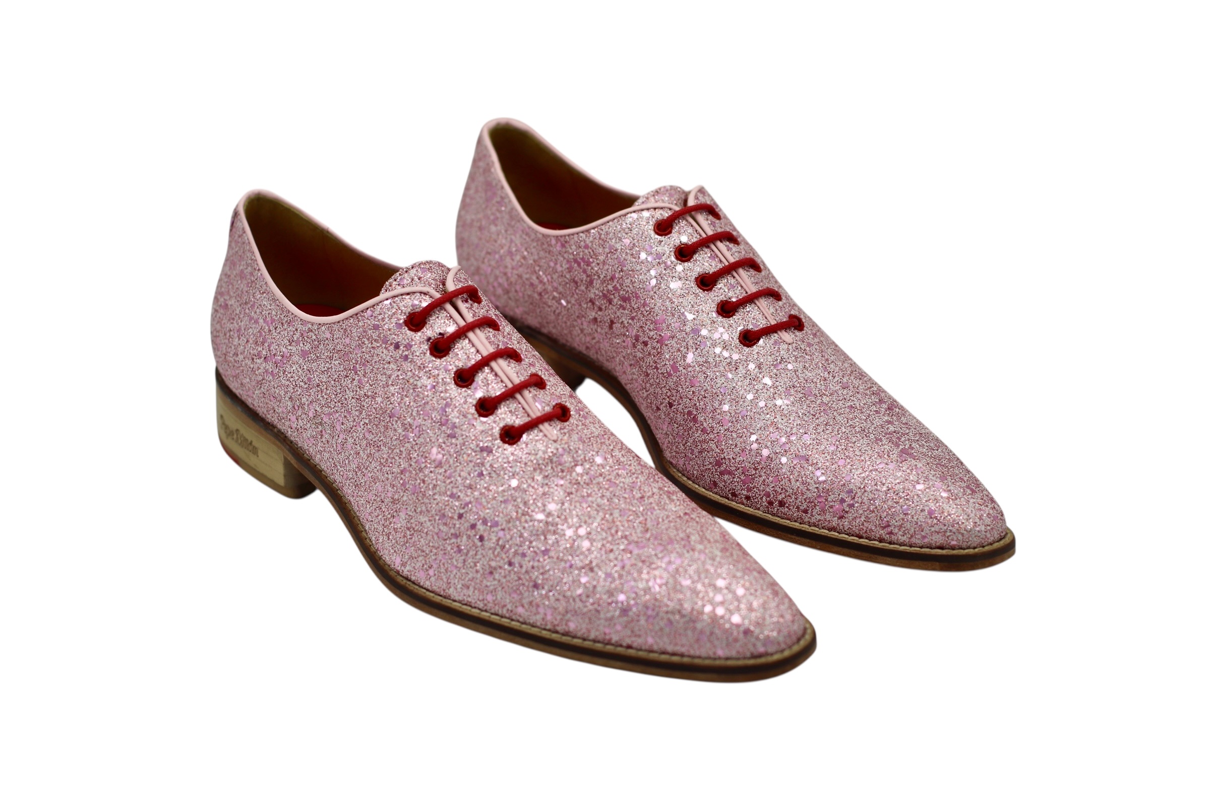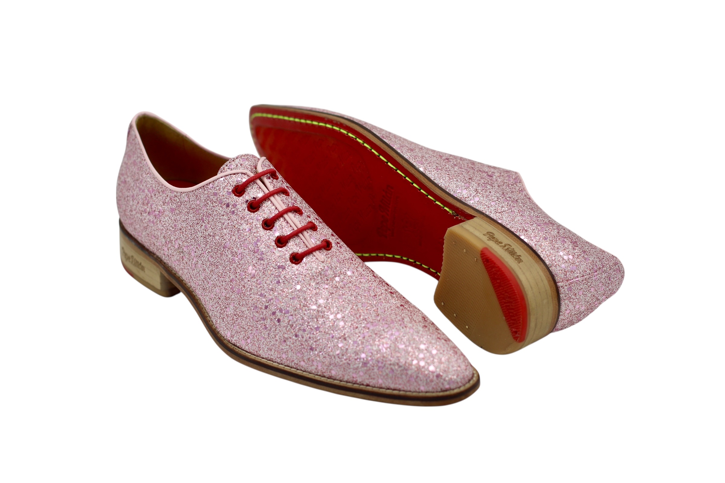 Zapato de glitter, diseñado en glitter pink promise, suela de cuero roja con una zona central antideslizante y con materiales de altisima calidad para la maxima comodidad de todos nuestros clientes.
