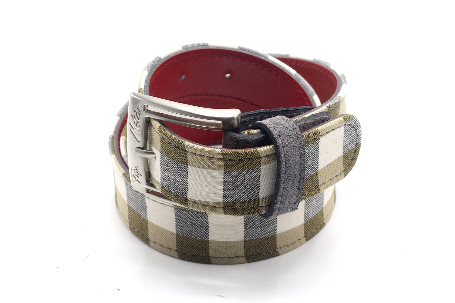 Cinturón modelo Pizarro diseñado en Escoces cuadros y Afelpado gris Perla, elaborado artesanalmente con materiales de alta calidad para la maxima comodidad de todos nuestros clientes.
