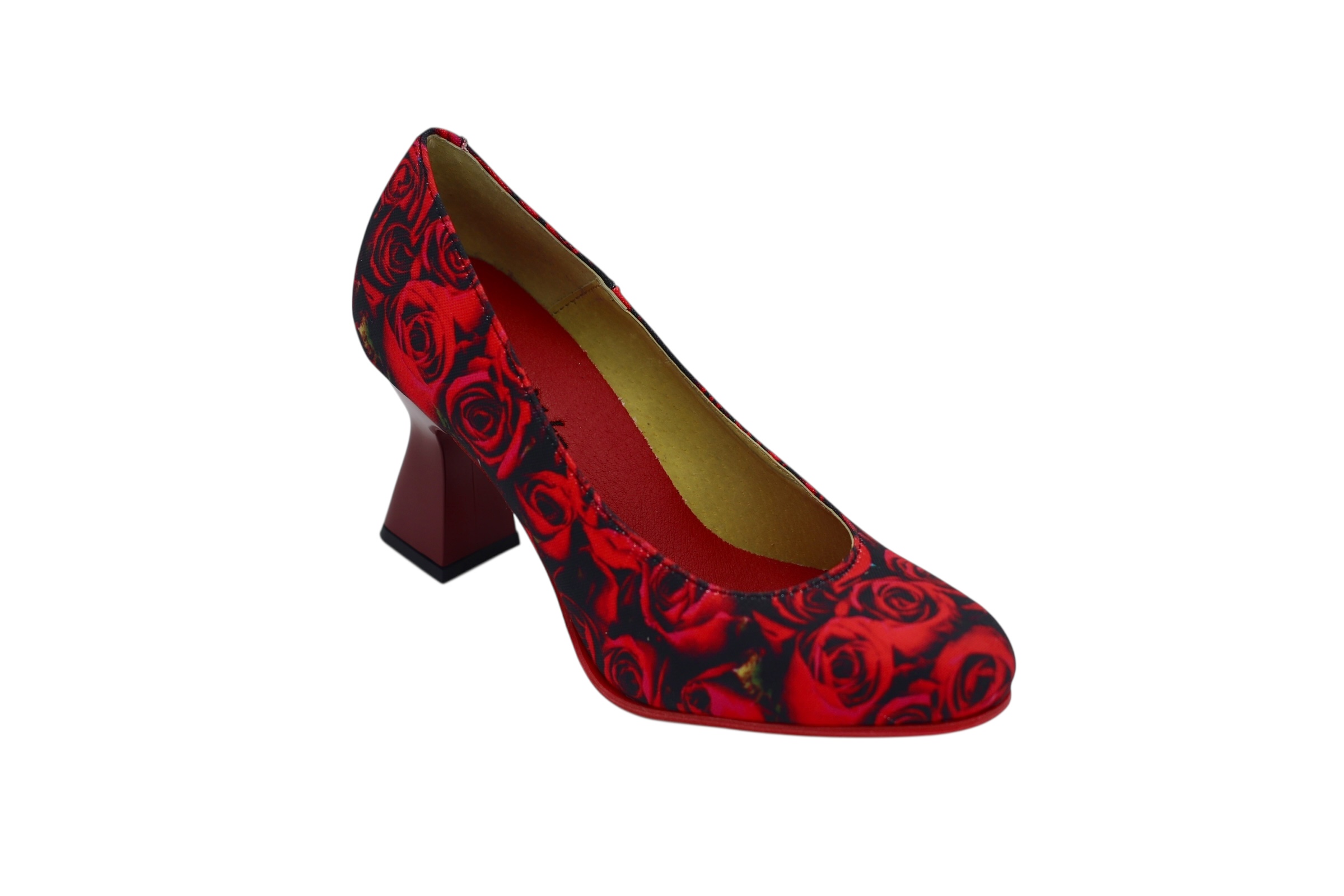 Zapato de tacon medio, diseñado en Rosas rojas, piso patin rojo antideslizante con tacon 25/2565 charol granate,con materiales de altisima calidad para la maxima comodidad de todos nuestros clientes.