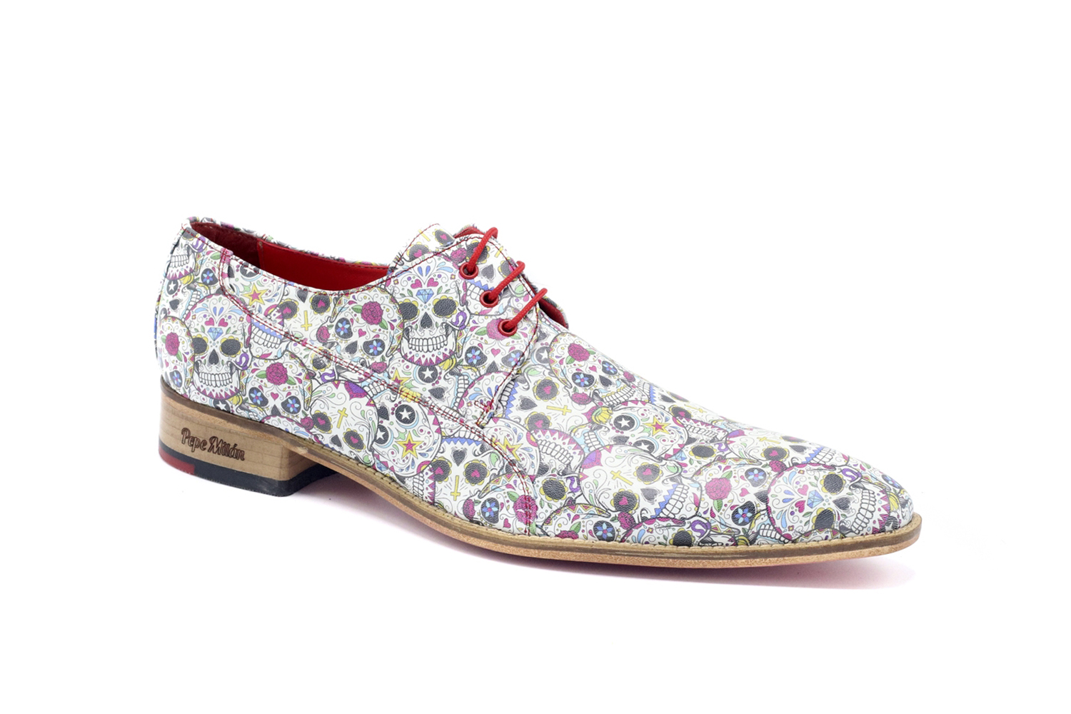 Zapato de napa, diseñado en napa Skulls, suela de cuero roja con una zona central anttideslizante y con materiales de altisima calidad para la maxima comodidad de todos nuestros clientes.