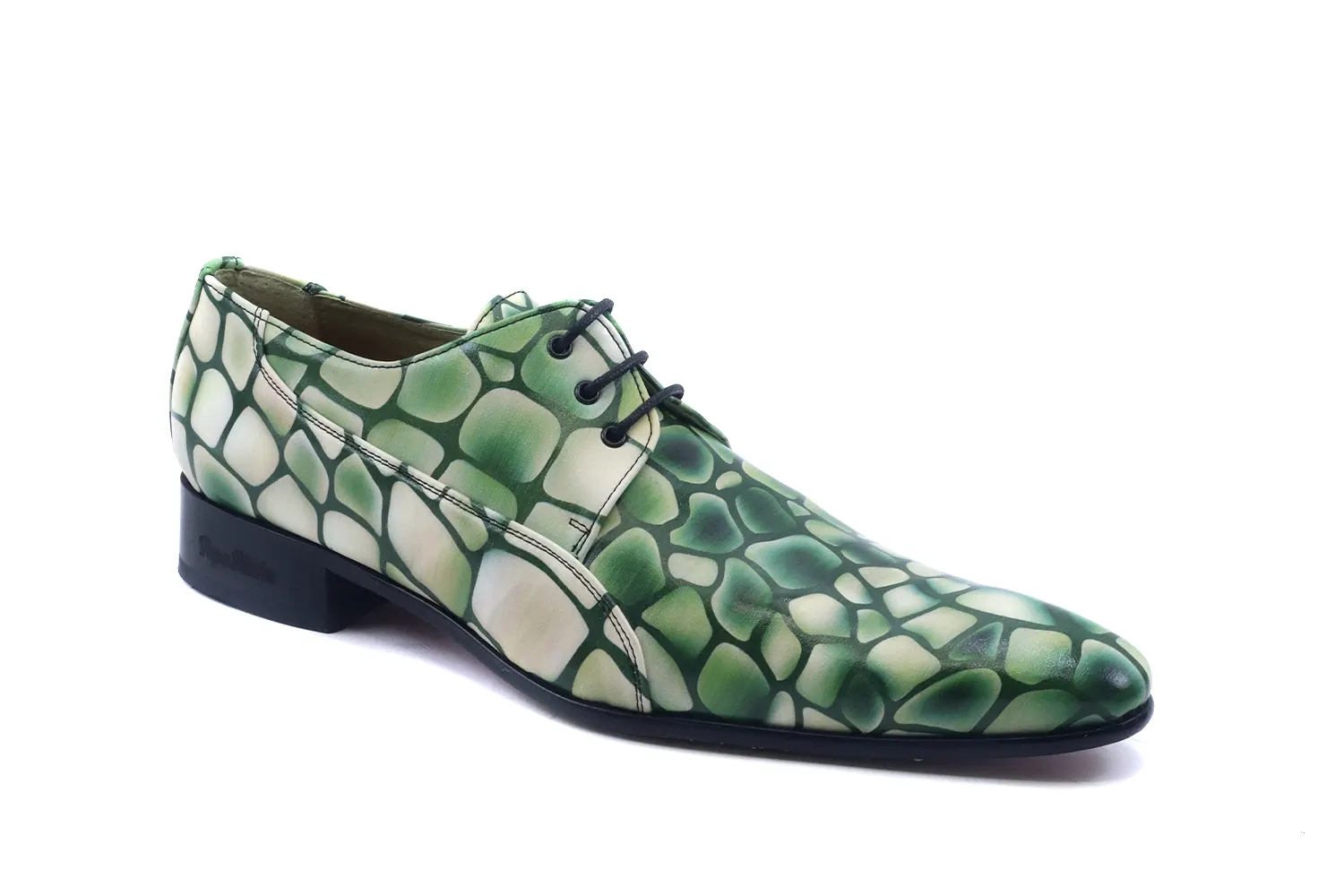 Zapato de napa, diseñado en napa Snake verde, suela de cuero roja con una zona central antideslizante y con materiales de altisima calidad para la maxima comodidad de todos nuestros clientes.