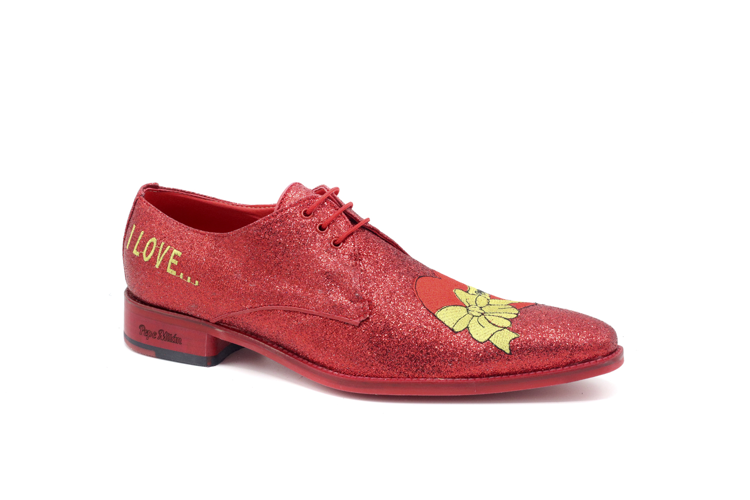 Zapato modelo Lovely, diseñado en Glitter Rojo - Bordado San Valentín 2 Horma Cuba, patin milán rojo antideslizante, con materiales de altisima calidad para la maxima comodida de todos nuestros clientes.