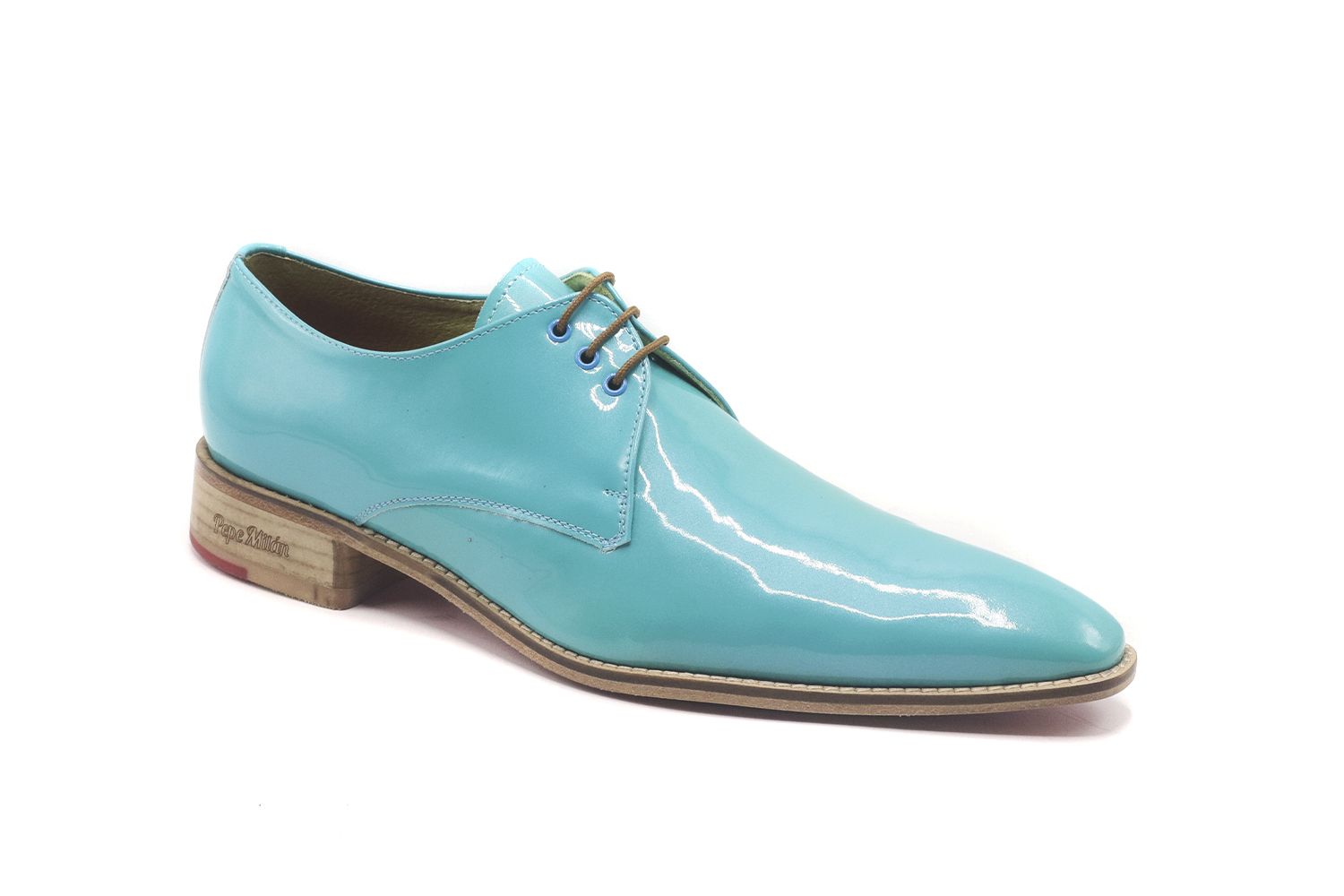 Zapato de charol, diseñado en charol Maldivas Azul pastel, suela de cuero roja con una zona central antideslizante y con materiales de altisima calidad para la maxima comodidad de todos nuestros clientes.