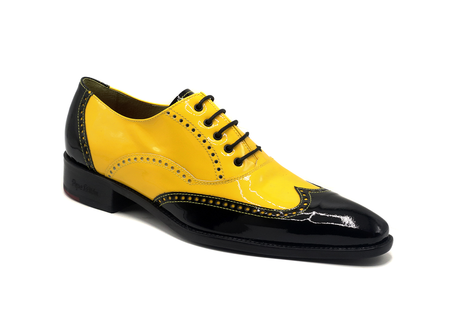 Zapato de charol, diseñado en Charol Sivan Negro Charol Amarillo, suela de cuero patin milán negro con una zona central antideslizante y con materiales de altisima calidad para la maxima comodidad de todos nuestros clientes.