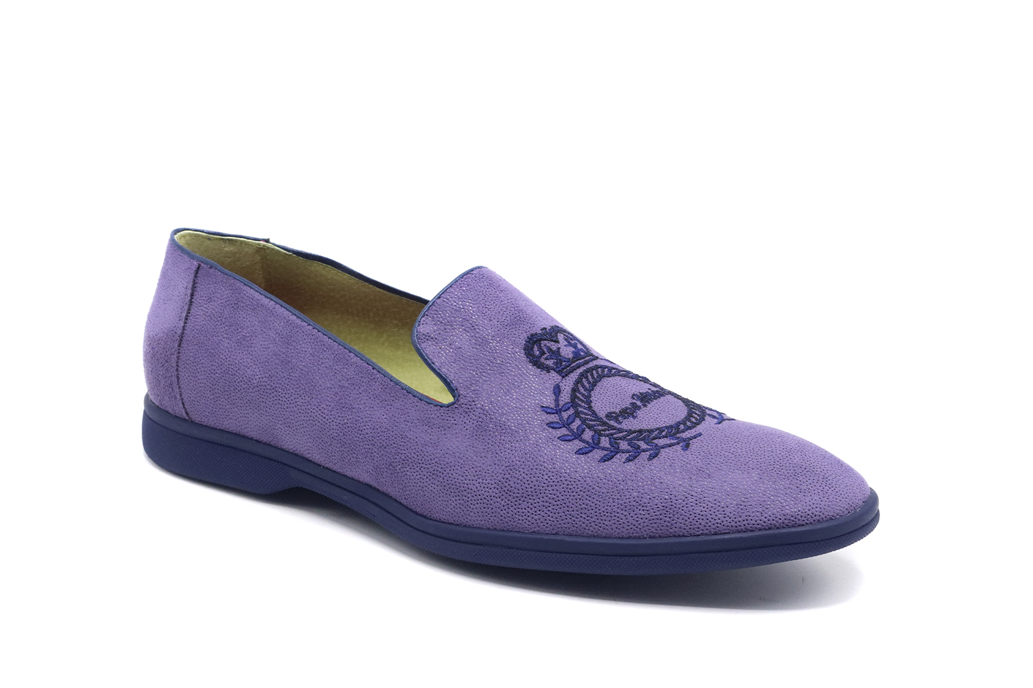 Chaussure modèle Beauregarde, conçue en Martele Lilac Dots Green Doublure Couronne Brodée Pepe Milan Couleur 1743, semelle en cuir rouge avec une zone centrale antidérapante et avec des matériaux de haute qualité pour le confort maximum de tous nos clients.