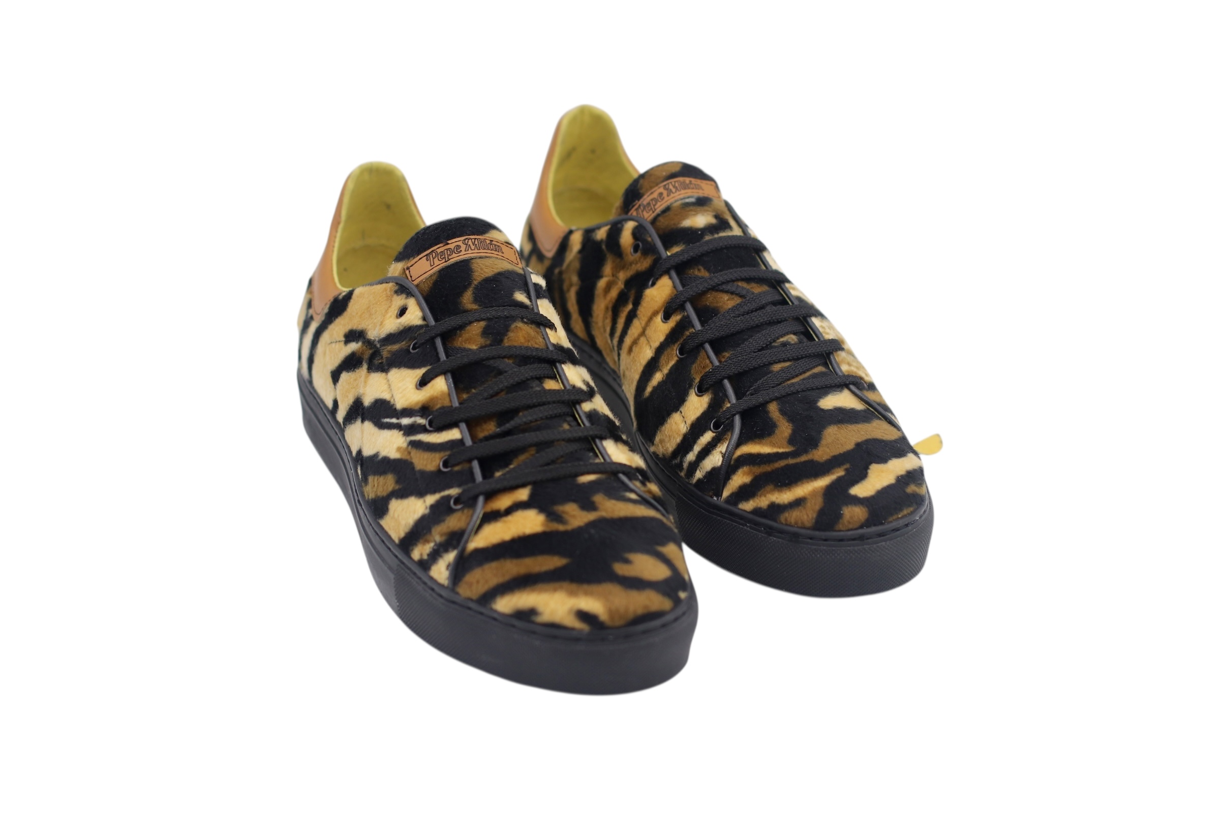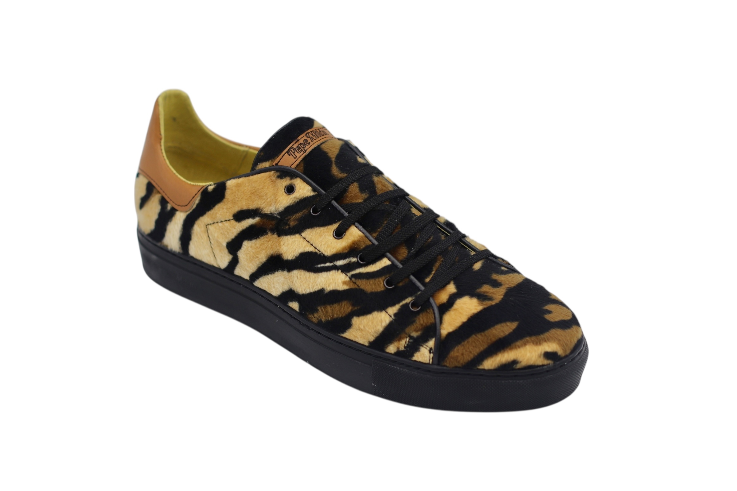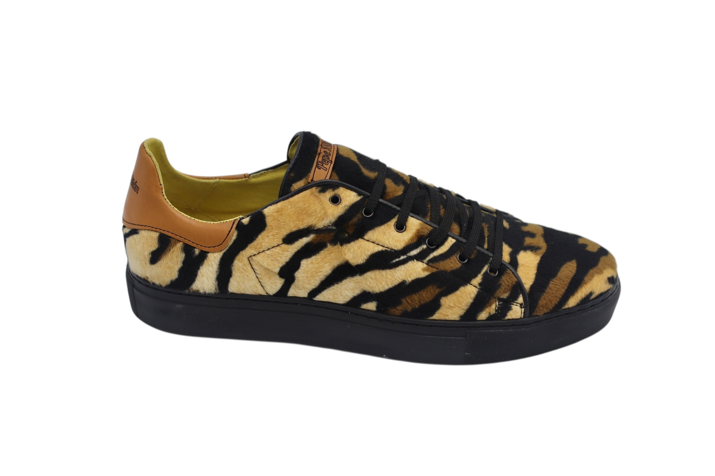 Baskets en textile, de couleur Tiguer marron avec une semelle en caoutchouc Bombay noir, fabriquées avec des matériaux de haute qualité pour un confort optimal à tous nos clients.