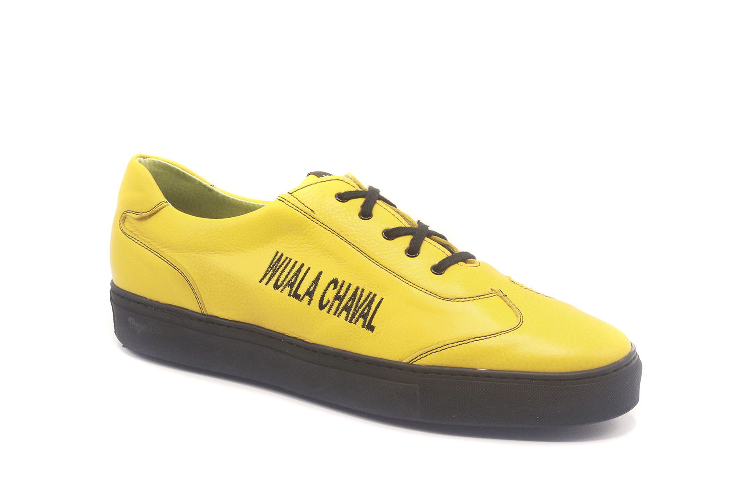 Baskets modèle California, conçues en cuir nappa jaune, semelle en caoutchouc, semelle intérieure grand confort.