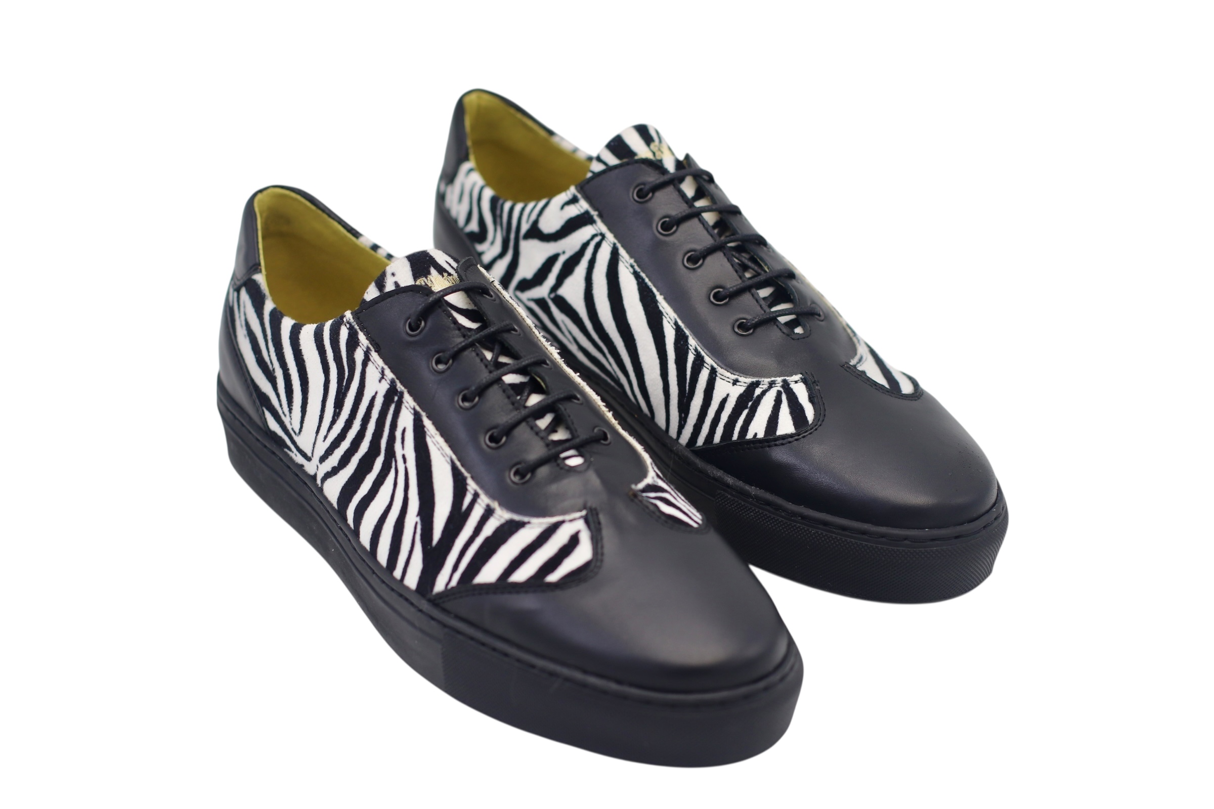 Baskets en textile, ornées d'un imprimé zèbre, avec une semelle compensée noire et des matériaux de haute qualité pour un confort optimal.