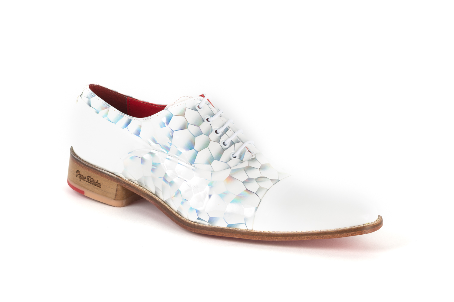 Design spécial en cuir verni blanc et cuir verni prisme qui se combinent entre eux, créant une image très complexe qui se combine avec tout type de vêtement.