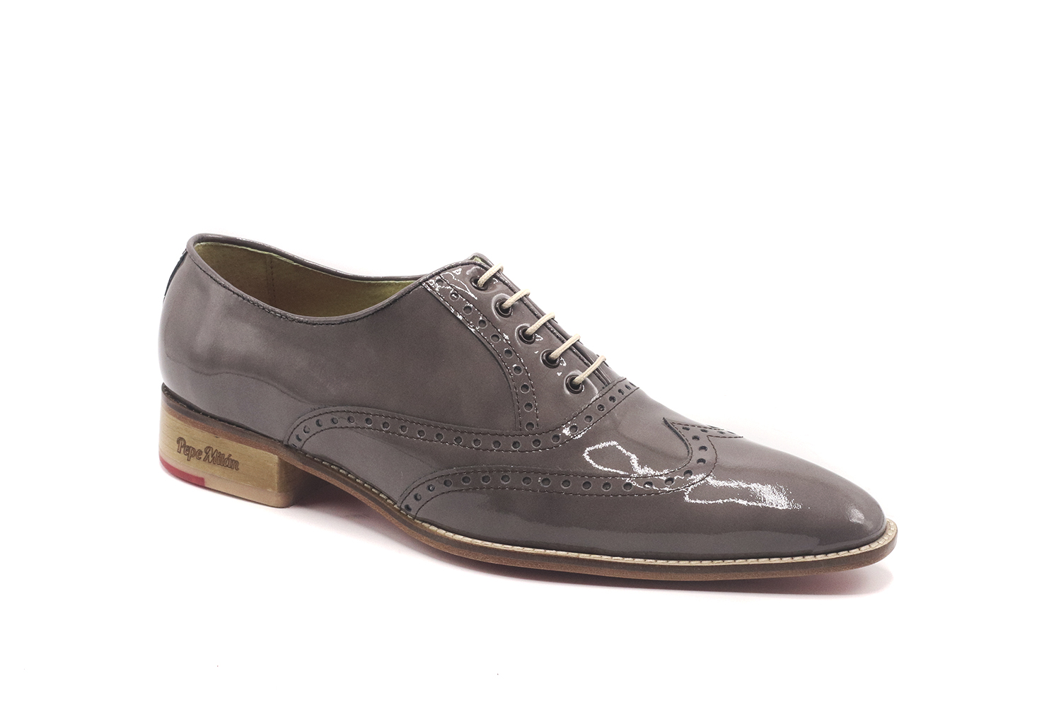 Chaussure en cuir verni, conçue en cuir verni Gema, semelle en cuir rouge avec une zone centrale antidérapante et avec des matériaux de haute qualité pour le confort maximum de tous nos clients.