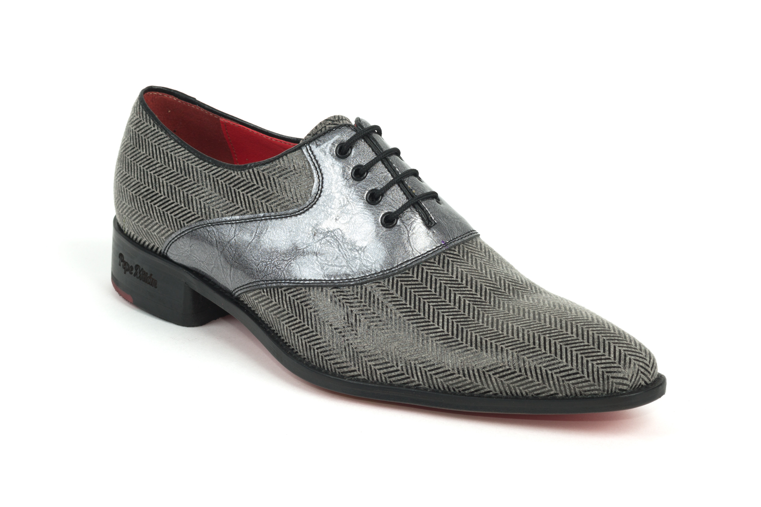 Fabriqué en fantasís espiga gris plomb et cuir gris. Avec cuba en dernier, semelle en cuir rouge cousue et semelle de confort incorporée. Spécial est un mot qui nous caractérise. Osez changer!