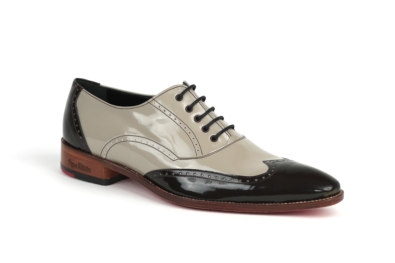 Chaussure en cuir verni, conçue en cuir verni Micky, semelle en cuir rouge avec une zone centrale antidérapante et avec des matériaux de haute qualité pour le confort maximum de tous nos clients.