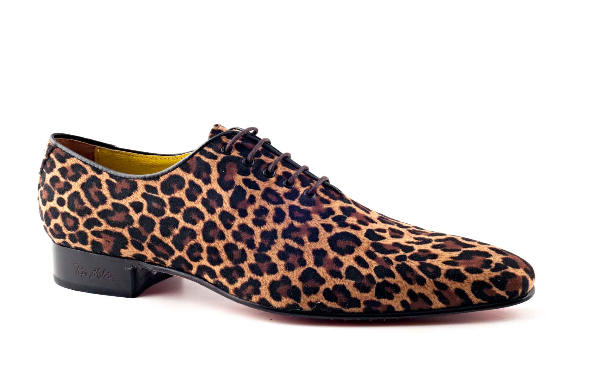 Modèle Afrique, faite à l'imitation léopard semelle en cuir marron cousu A-6, houseplant rembourré et doublé en cuir.