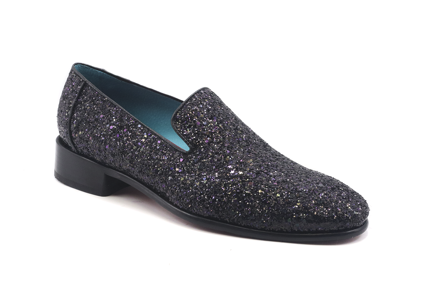 Chaussure à paillettes, conçue en Glitter 53 N-7 avec semelle en cuir rouge et zone centrale antidérapante suivant la méthode de fabrication Blake