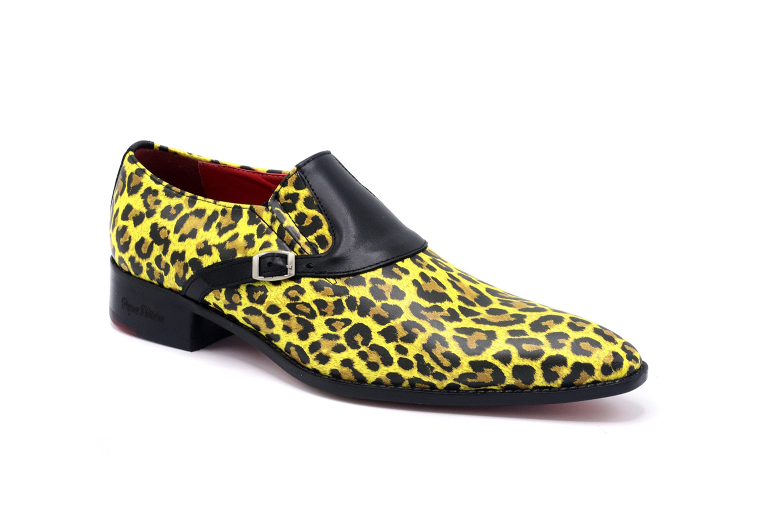 Design avec du cuir nappa noir et un imprimé léopard sur jaune qui se combinent à merveille et sont uniques en leur genre !!!!